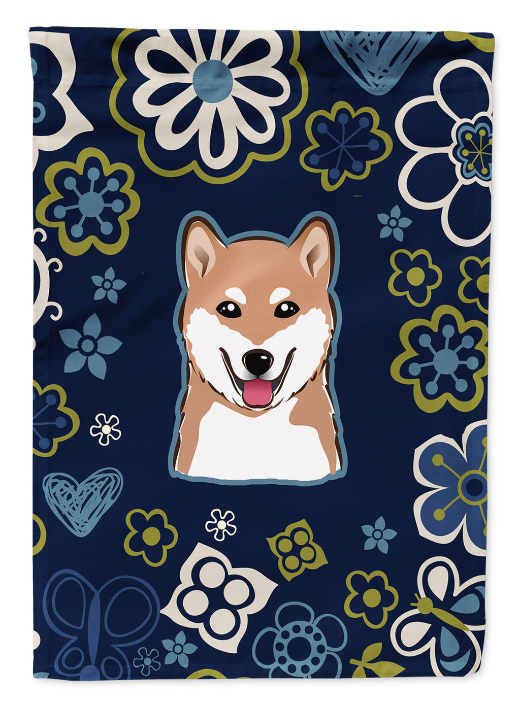 Blue Flowers Shiba Inu Garden Flag - Outdoor Decorative Yard Flag BB5076GF