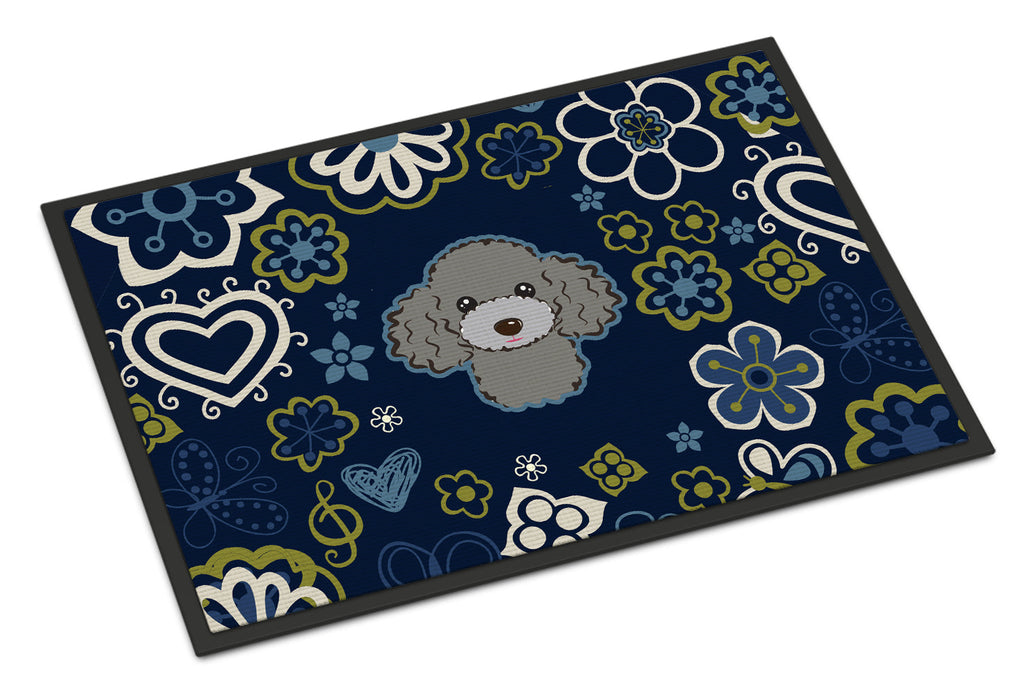 Blue Flowers Silver Gray Poodle Doormat - 18x27 Decorative Floor Mat – Indoor/Outdoor Rug with Artistic Flair BB5110MAT