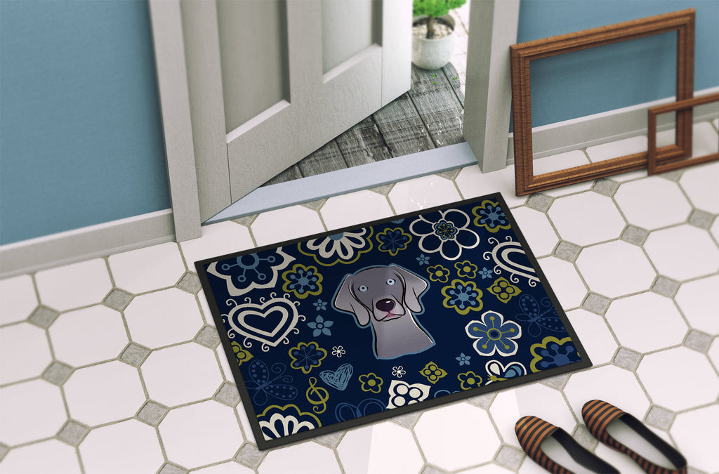 Decorate your space with our Weimaraner artwork on a Doormat. Welcome your guests in style with our Artwork Door Mat, designed to withstand almost any weather condition. This mat, measuring approximately 24 by 36 inches, is held together by durable black binding tape. Its top layer, composed of polyester felt, is dyed with the eye-catching image you see on the mat. A few layers below provide the mat with stability, while its rubber bottom is stamped to help prevent slipping and ensures safety. Our mat works wonderfully as both an indoor or outdoor door mat. For cleaning, simply hose it off with water or use a power washer - no need for any cleaner that produces suds. Avoid scrubbing with a brush, instead, opt for the vacuum on floor setting. Designed manufactured and printed in the USA, this mat is a perfect addition to your porch, outdoor kitchen, entryway, or any indoor space. Its unique design makes it a charming decorative rug that greets your guests and adds a stylish touch to your home decor.