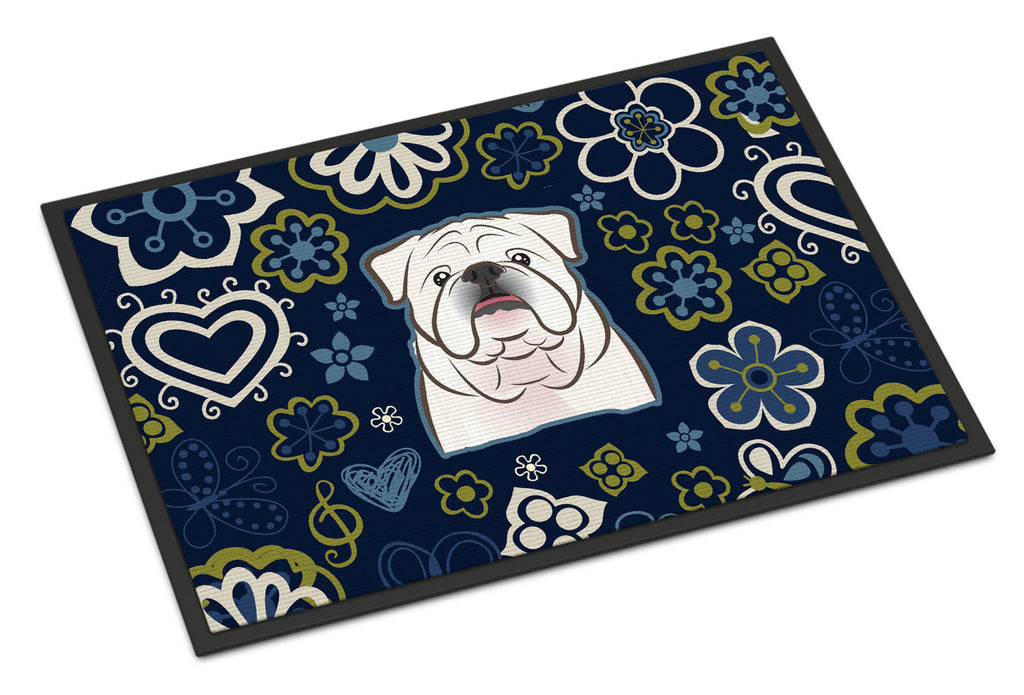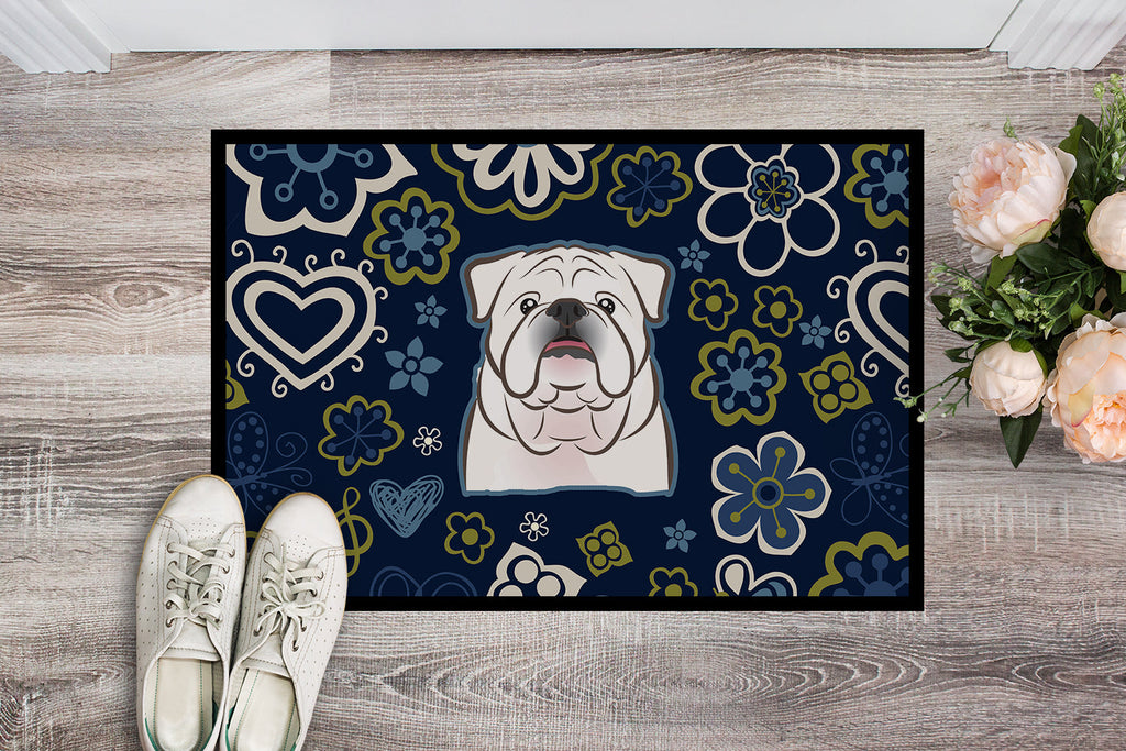 Blue Flowers White English Bulldog Doormat - 18x27 Decorative Floor Mat – Indoor/Outdoor Rug with Artistic Flair BB5071MAT