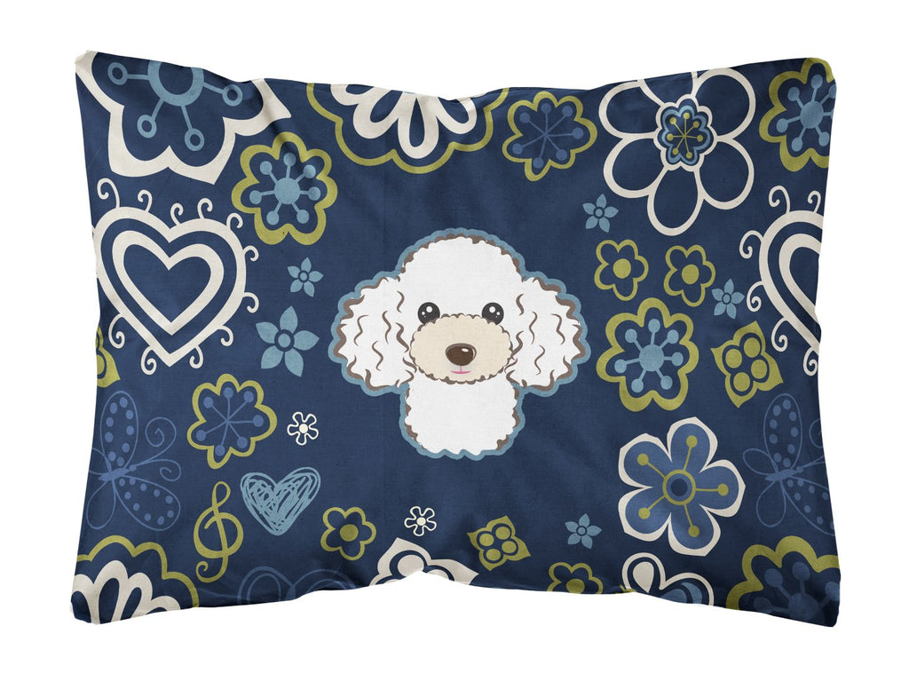 Blue Flowers White Poodle Canvas Fabric Decorative Pillow BB5108PW1216