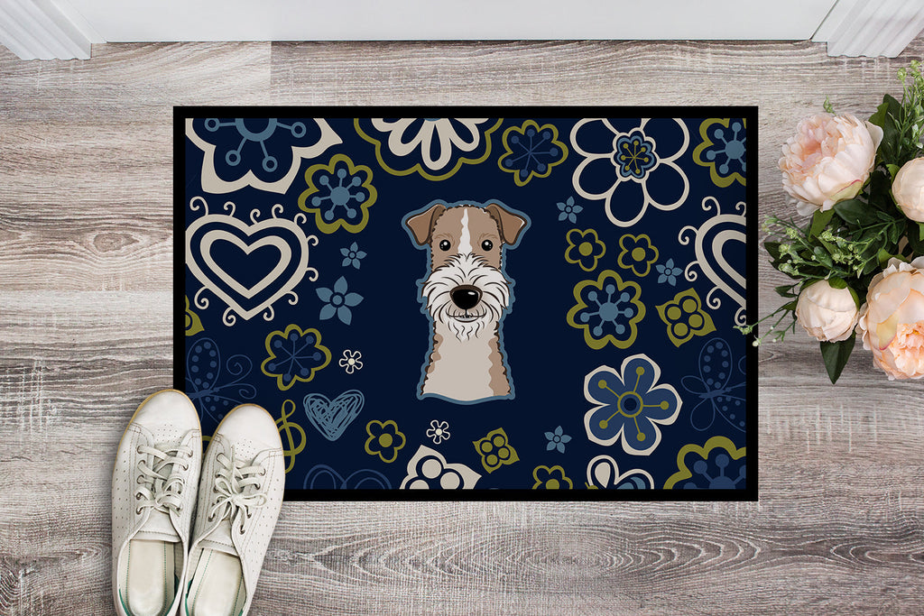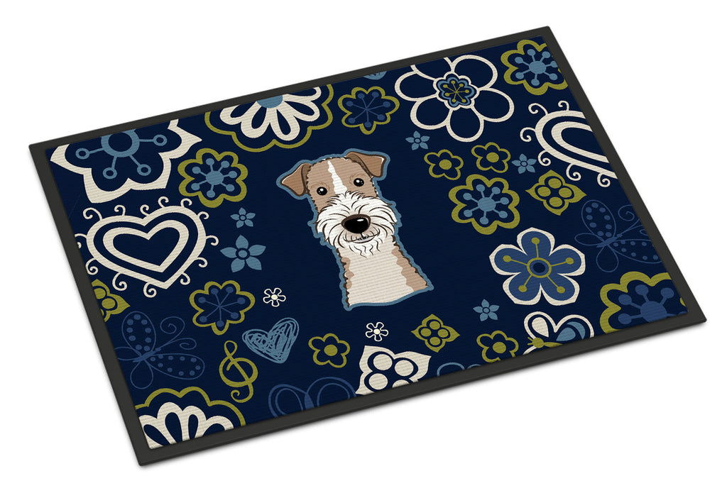 Blue Flowers Wire Haired Fox Terrier Doormat - 24x36 Decorative Floor Mat – Indoor/Outdoor Rug with Artistic Flair BB5098JMAT
