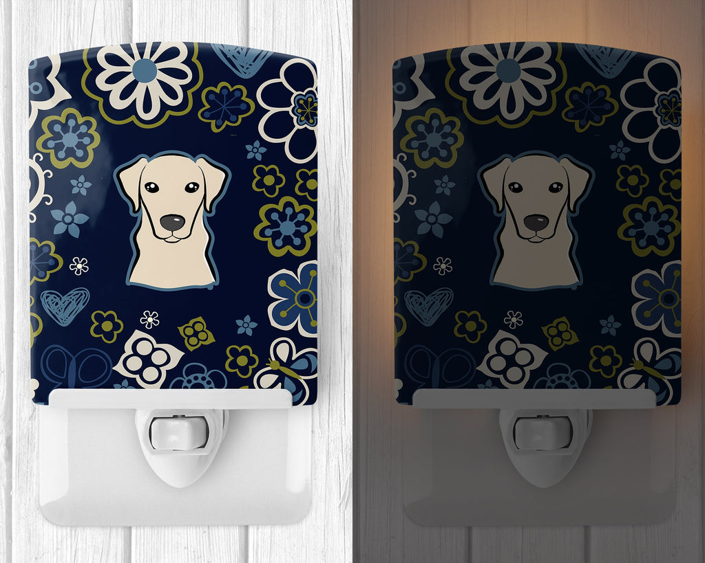Blue Flowers Yellow Labrador Ceramic Night Light BB5073CNL
