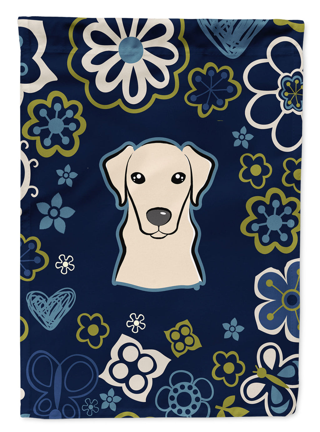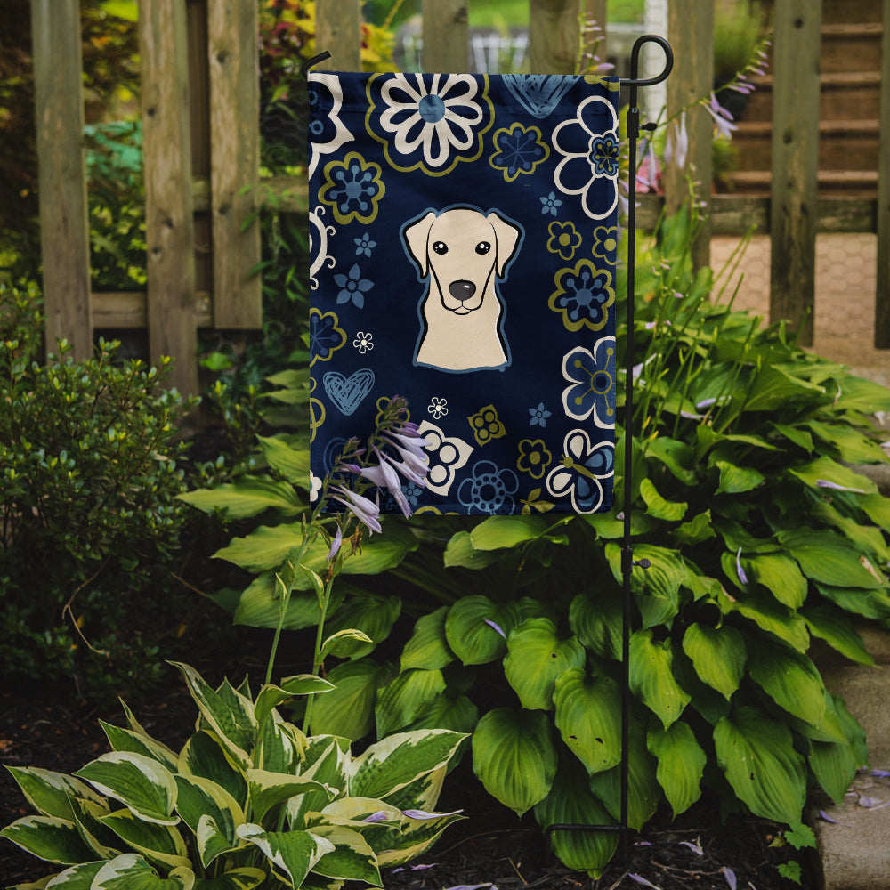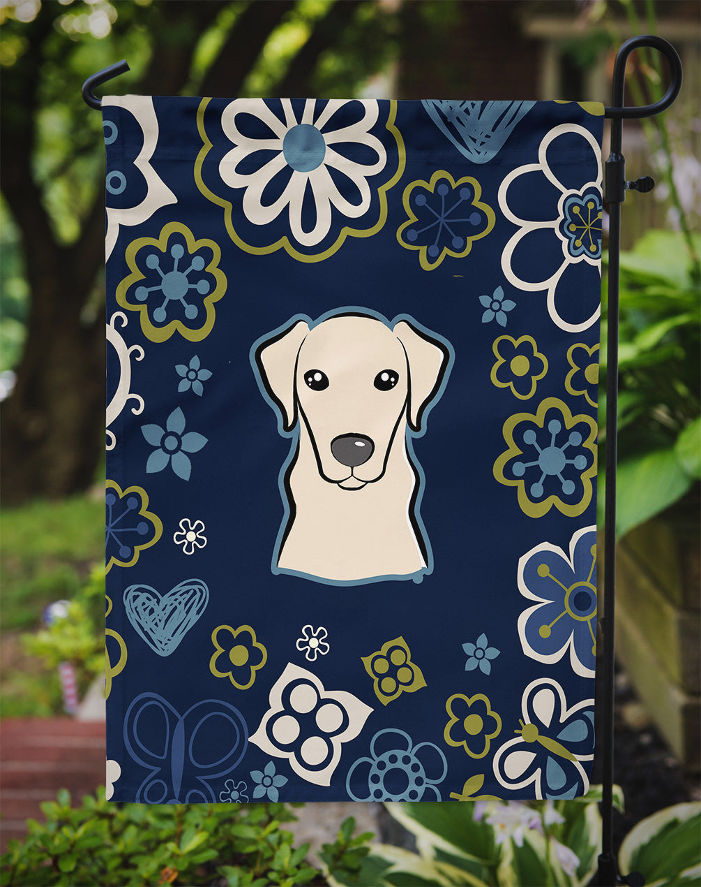 Blue Flowers Yellow Labrador Garden Flag - Outdoor Decorative Yard Flag