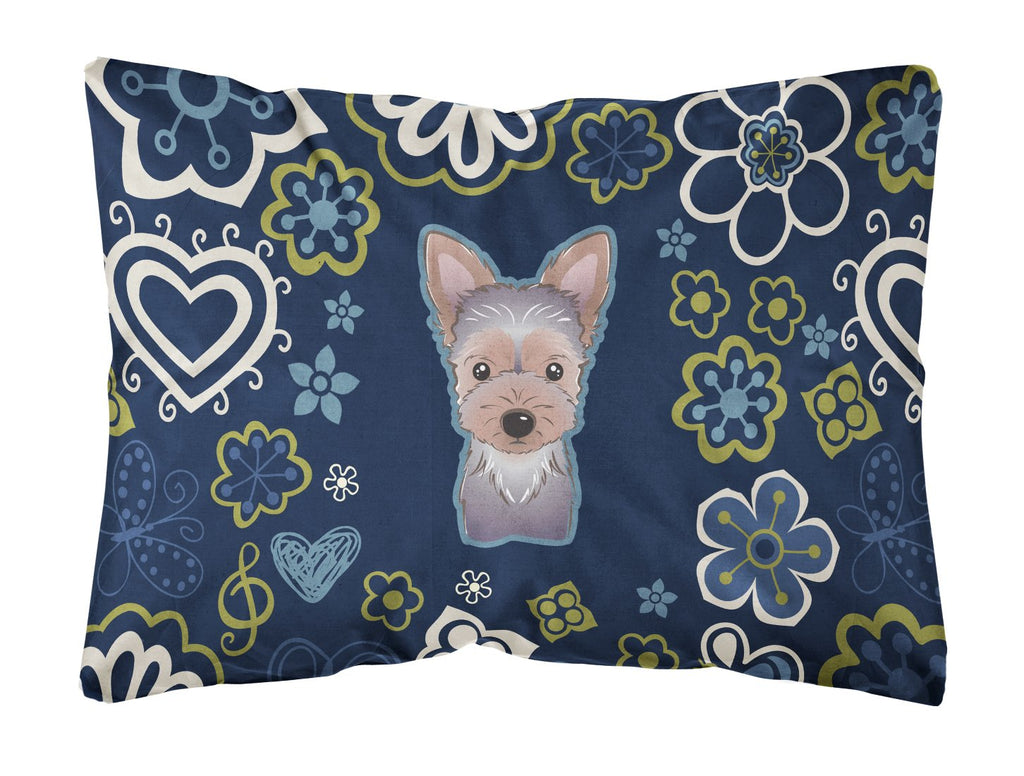 Blue Flowers Yorkie Puppy Canvas Fabric Decorative Pillow BB5083PW1216