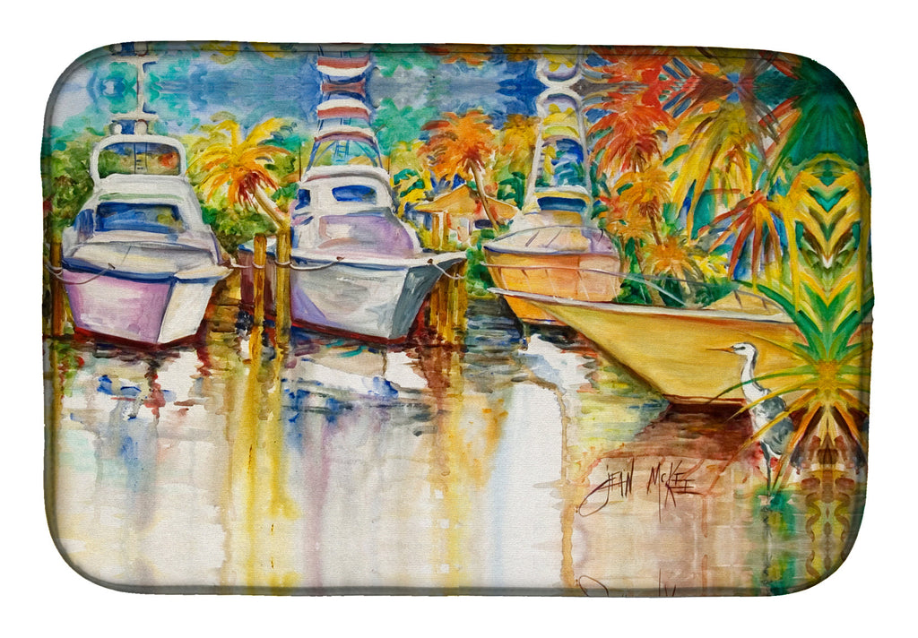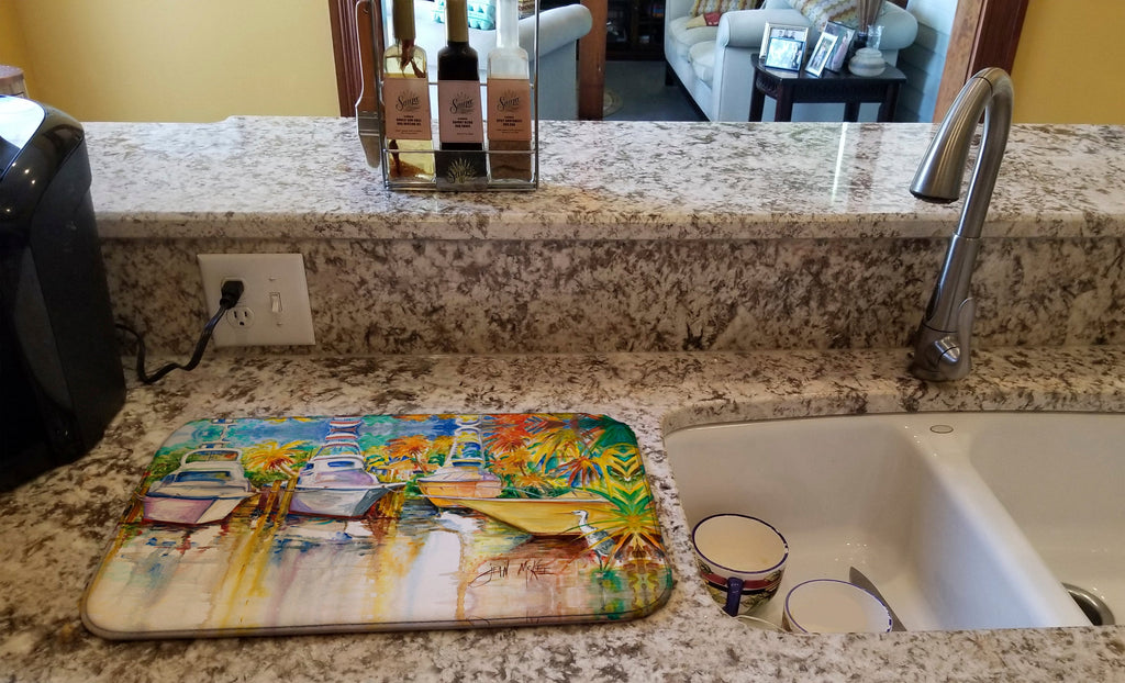 Blue Heron and Deep Sea Fishing Boats Dish Drying Mat – Absorbent, Artistic Kitchen Essentials JMK1051DDM