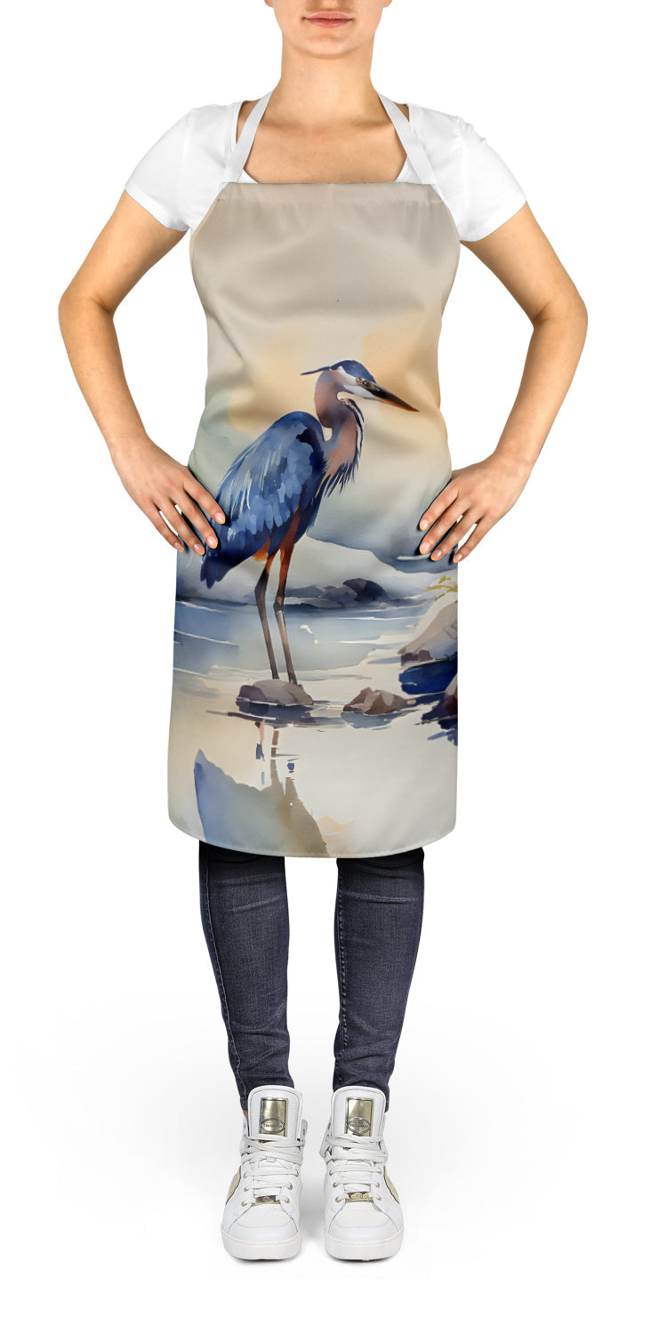 Shown here is the Blue Heron Apron from Caroline's Treasures featuring artwork of a Blue Heron in a Everyday design. The detailed illustration and vibrant colors make it a standout accent for your home. Set sail into seaside style with our Nautical Collection. Featuring coastal-inspired designs anchored in classic ocean motifs and breezy charm, this collection brings relaxed personality and timeless décor to your home and thoughtful gifts for lovers of coastal living. Elevate your cooking, baking, and grilling experiences with our versatile Kitchen or BBQ Apron. This Bib Style apron isn't just limited to culinary activities - it also serves as an excellent baking apron, artist apron, server apron, gardening apron, or even a dog grooming apron. The apron showcases vibrant full-color artwork contributed by one of our talented artists, bringing a dash of style to your daily tasks. With dimensions of approximately 27"W x 30"H, it provides ample coverage to protect your clothing from spills and splashes. Our apron is meticulously crafted from 100% Ultra Spun Polyester, known for its durability and lightweight nature. The apron comes with white tie straps, ensuring a comfortable and adjustable fit for all. It's a perfect choice for kitchen apron enthusiasts, whether you are a woman or a man. Designed for easy maintenance, this apron is fully machine washable. The quick-drying polyester material actively reduces staining, keeping your apron looking fresh and new for longer. Our beautifully designed apron isn't just a functional kitchen accessory - it's a fashion statement in the culinary world! Blue herons are tall birds with long legs and graceful posture. Their calm stance conveys elegance. Makes a heartfelt gift for: Blue Heron owners, Birds lovers, Everyday gifts, pet parents, friends who adore their Blue Heron, or anyone celebrating Birds.