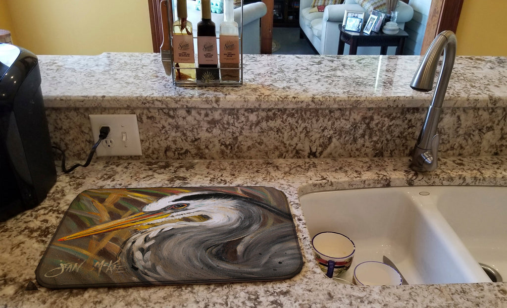 Blue Heron Dish Drying Mat – Absorbent, Artistic Kitchen Essentials JMK1012DDM
