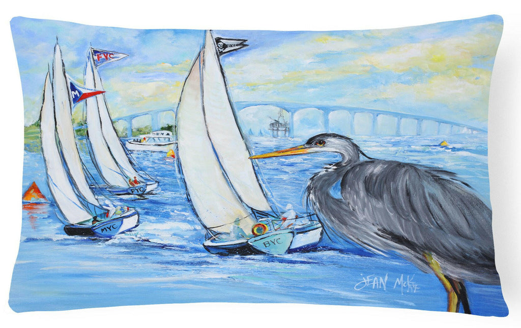 Blue Heron Sailboats Dog River Bridge Canvas Fabric Decorative Pillow