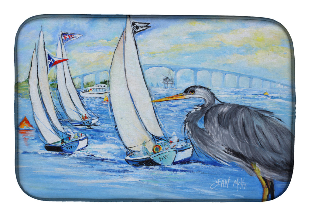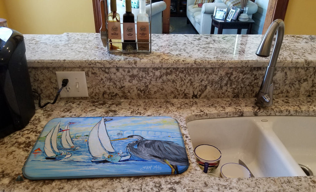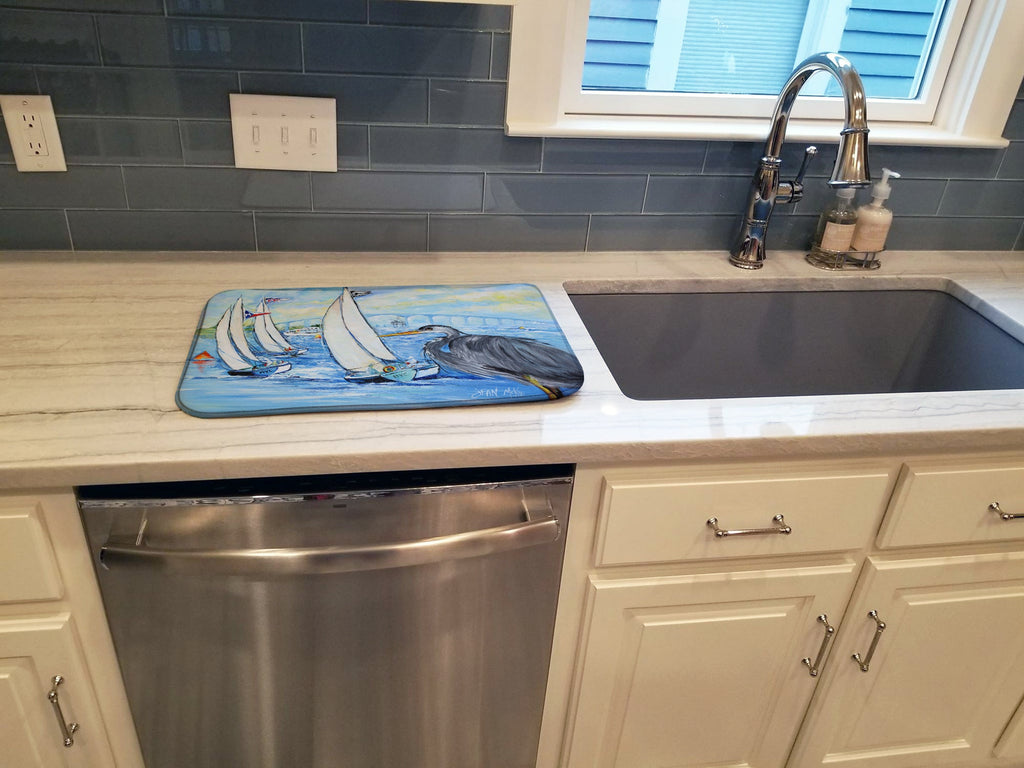 Blue Heron Sailboats Dog River Bridge Dish Drying Mat – Absorbent, Artistic Kitchen Essentials JMK1001DDM