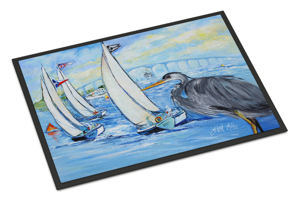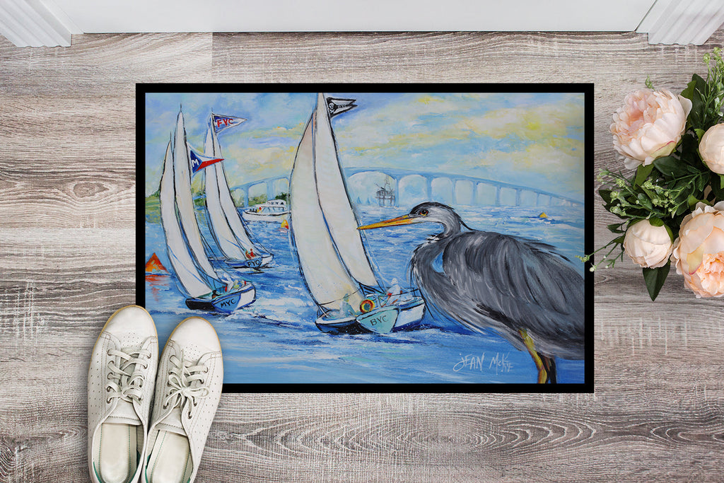 Blue Heron Sailboats Dog River Bridge Doormat - 24x36 Decorative Floor Mat – Indoor/Outdoor Rug with Artistic Flair JMK1001JMAT