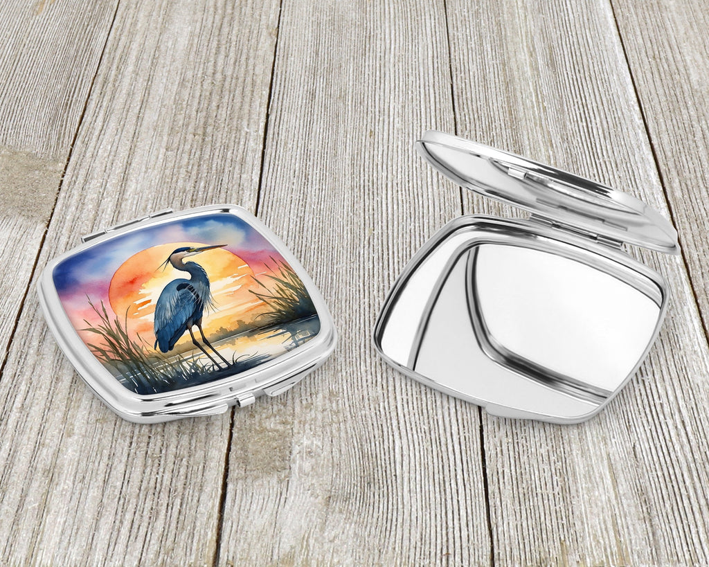 Blue Heron Setting Sun Compact Mirror – Stylish Purse Mirror with Artistic Covers