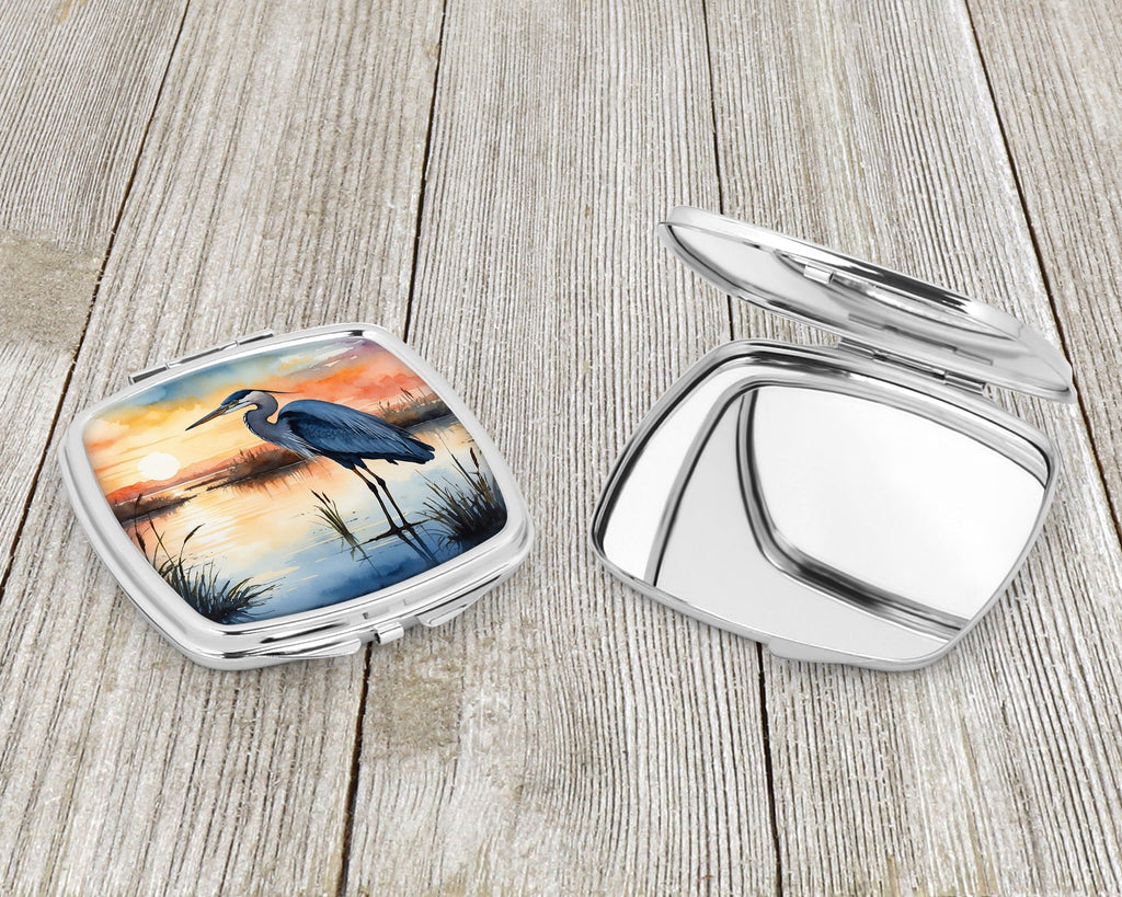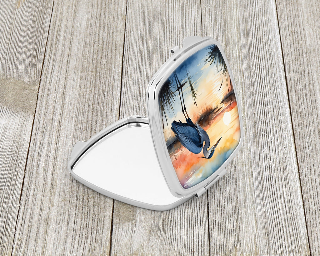 Shown here is the Blue Heron Setting Sun Compact Mirror from Caroline's Treasures featuring artwork of a Blue Heron in a Everyday design. The detailed illustration and vibrant colors make it a standout accent for your home. Fill your home with the joyful song of nature with our Birds Birds Birds Collection. Featuring vibrant and whimsical bird-inspired designs, this collection brings cheerful charm and uplifting style to home décor and thoughtful gifts for bird lovers and nature enthusiasts. Introducing our Square Compact Mirror, a blend of elegance, functionality, and compactness, perfect for on-the-go touch-ups. This Silvertone metal mirror, with dimensions of 2.75 inches x 3 inches x .3 inches, fits effortlessly into your purse, handbag, or pocket, ensuring that you can check your appearance anytime, anywhere. Our compact mirror stands out with its eye-catching artwork on the front, adding a dash of style to this practical accessory. It is more than just a mirror; it's a statement piece that reflects your personality and aesthetic. When opened, this compact reveals two mirrors inside, doubling your perspective for precise touch-ups. The Silvertone metal construction ensures durability while maintaining a lightweight feel, making it an ideal everyday carry item. Whether you're rushing to a meeting, prepping for a dinner date, or just need a quick check on your look, our Square Compact Mirror is your reliable companion. Experience the perfect blend of style and practicality with this must-have accessory. Blue herons are tall birds with long legs and graceful posture. Their calm stance conveys elegance. Purses, handbags, backpacks, and travel kits, everyday touch-ups and quick checks, Birds-themed accessories, or year-round use for Blue Heron lovers. Makes a heartfelt gift for: Blue Heron owners, Birds lovers, Everyday gifts, pet parents, friends who adore their Blue Heron, or anyone celebrating Birds.