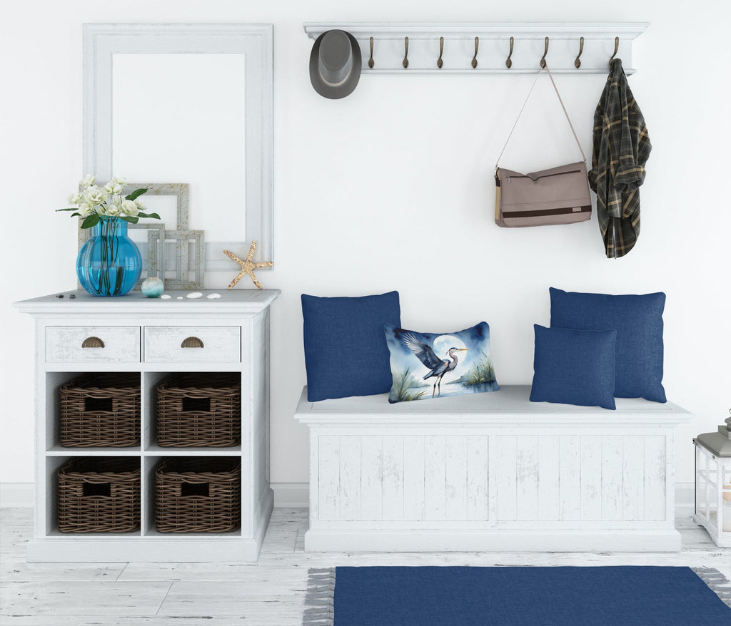Throw Pillow featuring breed specific Blue Heron artwork. Embrace the fusion of comfort and style with Caroline's Treasures Fabric Decorative Pillow. This 12x16 inch outdoor pillow is designed to complement your patio furniture, adding a splash of color and artistry to your outdoor setting. Constructed with a 100% Polyester Fabric pillow sham filled with a plush pillow form, this cushion is as comfortable as it is durable. Our outdoor pillow utilizes a novel fabric, meticulously woven for enhanced water resistance. This soft canvas material is equally suited for your indoor couch as well as outdoor settings such as the patio, porch, or veranda. To ensure enduring vibrance, we employ colorfast dyes resistant to fading even when subjected to weather elements. The making of this pillow involves the delicate sewing together of three fabric pieces to create a sham, into which a polyester insert is carefully placed. The result is an overstuffed pillow that tenaciously holds its shape. With both the sham and the pillow insert crafted in the United States, these handmade pillows are a testament to superior local craftsmanship. Note that as these pillows are handmade, sizes may slightly vary, enhancing their unique appeal. Enjoy comfort in style with Caroline's Treasures Fabric Decorative Pillow.
