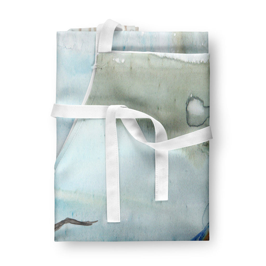 Elevate your cooking, baking, and grilling experiences with our versatile Kitchen or BBQ Apron. This Bib Style apron isn't just limited to culinary activities - it also serves as an excellent baking apron, artist apron, server apron, gardening apron, or even a dog grooming apron. The apron showcases vibrant full-color artwork contributed by one of our talented artists, bringing a dash of style to your daily tasks. With dimensions of approximately 27"W x 30"H, it provides ample coverage to protect your clothing from spills and splashes. Our apron is meticulously crafted from 100% Ultra Spun Polyester, known for its durability and lightweight nature. The apron comes with white tie straps, ensuring a comfortable and adjustable fit for all. It's a perfect choice for kitchen apron enthusiasts, whether you are a woman or a man. Designed for easy maintenance, this apron is fully machine washable. The quick-drying polyester material actively reduces staining, keeping your apron looking fresh and new for longer. Our beautifully designed apron isn't just a functional kitchen accessory - it's a fashion statement in the culinary world!