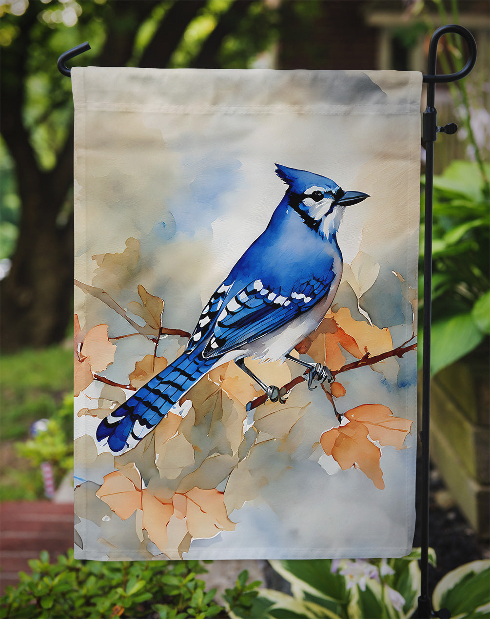 Decorate your space with our Blue Jay artwork on a Garden Flag. Enhance the beauty of your garden, patio, or yard with Caroline's Treasures Decorative Garden Flag, proudly made in the USA. Crafted from two pieces of thick, double-sided polyester fabric, this 2-ply garden flag is designed to withstand various weather conditions, making it water-resistant and weatherproof. Featuring correctly readable words on both sides, this garden flag offers a delightful visual experience from any angle. With its heavier weight, it stands out among other garden flags, ensuring stability and durability even in wind, rain, and snow. Measuring approximately 11 1/4 inches by 15 1/2 inches, this flag allows you to personalize your outdoor decor. It comes with a 1 1/2-inch sleeve sewn in, allowing easy attachment to any standard garden flag stand or garden size porch hanger (sold separately). Make a statement in your outdoor space with Caroline's Treasures Decorative Garden Flag, a vibrant and high-quality flag that adds color and personality to your surroundings. Proudly made in the USA, it's a symbol of quality craftsmanship and attention to detail.