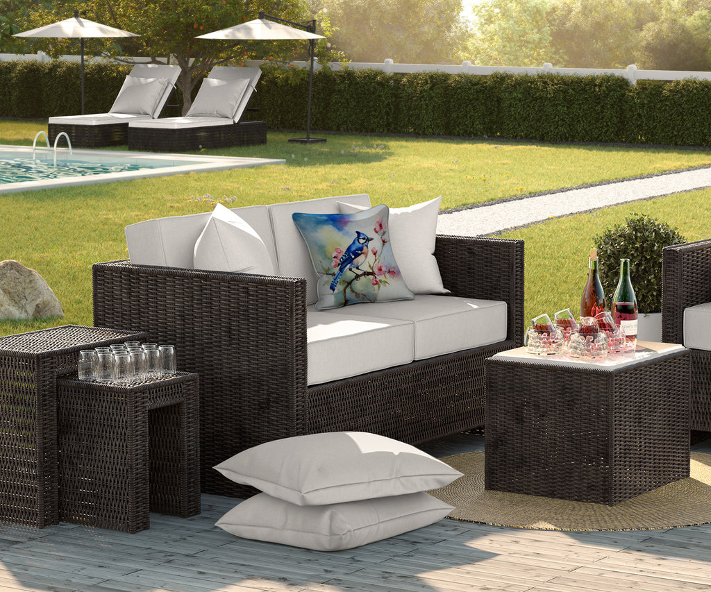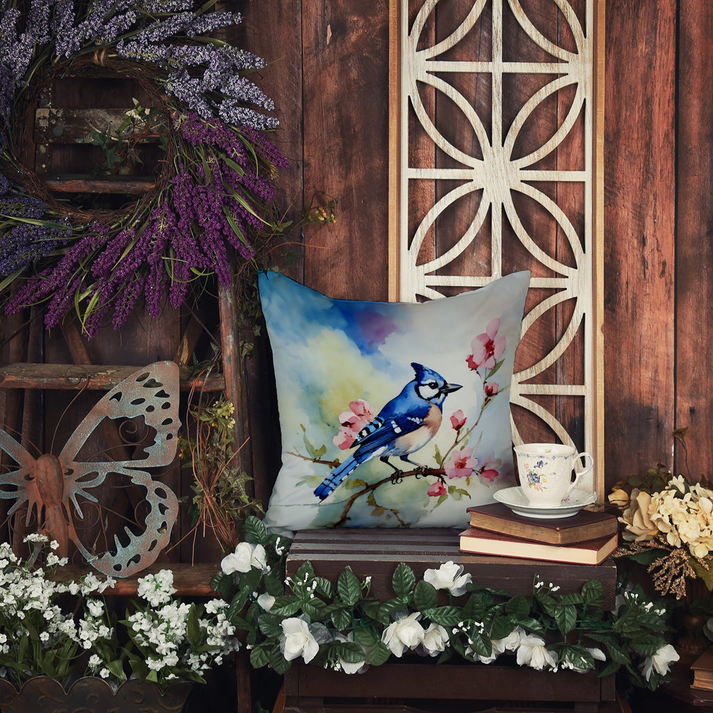 Throw Pillow featuring breed specific Blue Jay artwork. Revitalize your outdoor or indoor living space with Caroline's Treasures 18x18 Fabric Decorative Pillow. With a generously sized dimension of approximately 18 inches by 18 inches, this pillow makes a comfortable and aesthetic addition to any seating area. Made from a unique, water-resistant material developed by Caroline's Treasures, the pillow sham is 100% polyester fabric that's durable and ready to weather any condition. Its vibrant, full-color artwork will not fade over time as it is dyed with color-fast dyes. Whether you place it on your patio furniture, porch, veranda, or indoor couch, its soft canvas fabric ensures a cozy experience. The pillow is handcrafted in the United States, featuring a sham created from three pieces of fabric and a polyester insert for enduring shape and overstuffed comfort. Despite being robustly built to endure the outdoors, it is as soft and snug as your favorite indoor cushions. Please note, as all our pillows are handmade, sizes may vary slightly, adding to the charm of this unique decorative item.