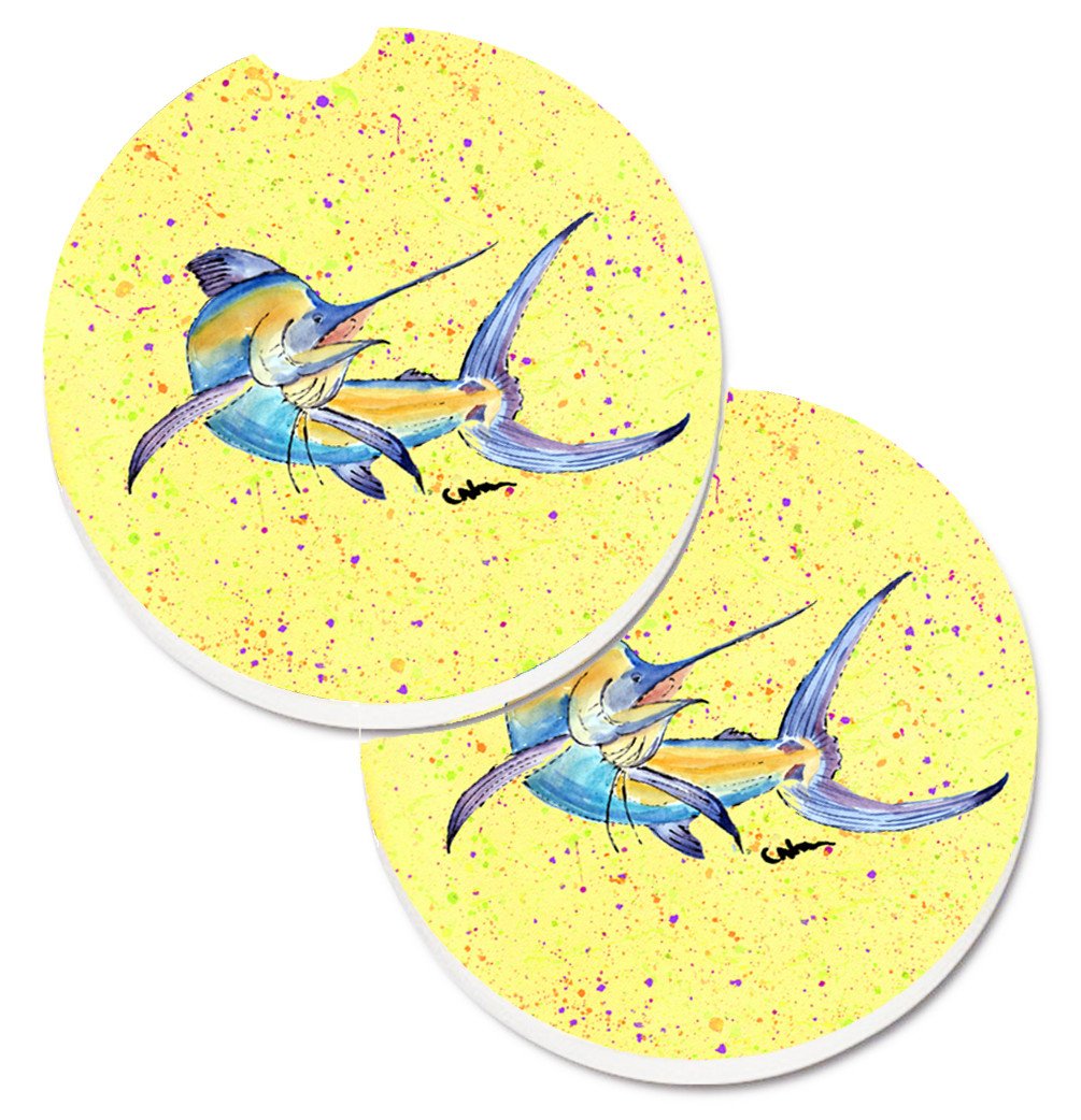 Blue Marlin on Yellow Car Coasters – Set of 2 - Absorbent Stone with Fun & Functional Artwork 8533CARC