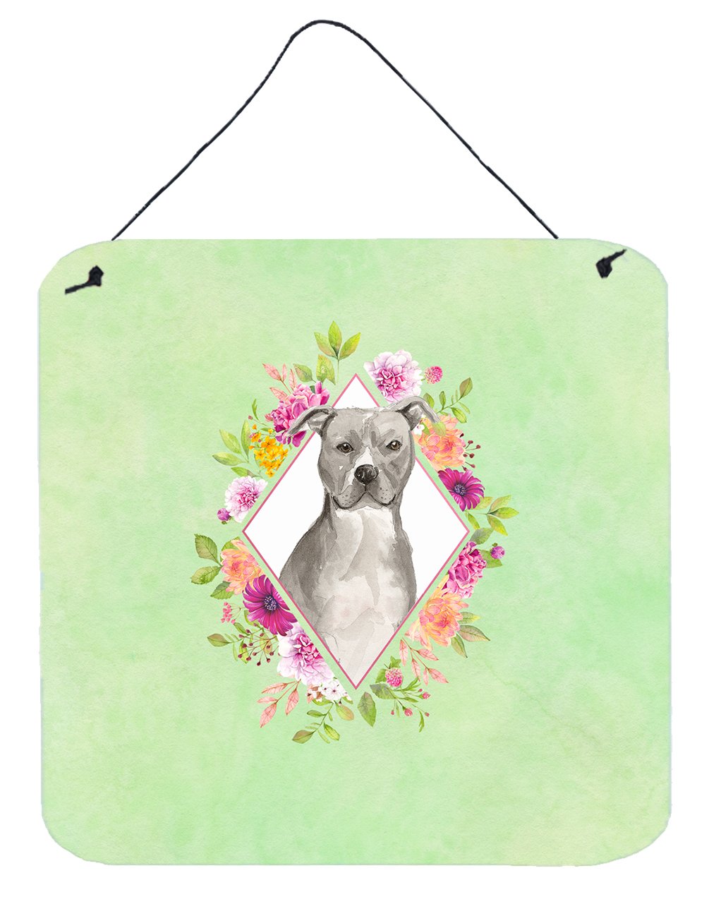 Blue Pit Bull Terrier Green Flowers Wall or Door Hanging Prints CK4429DS66