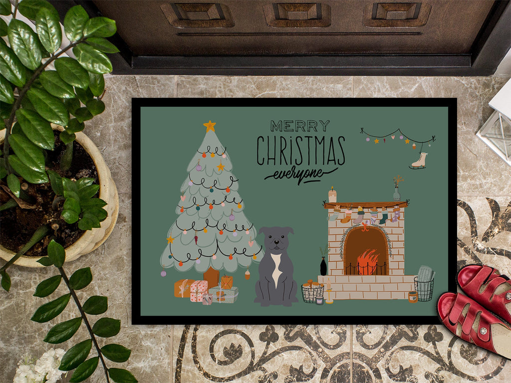 Decorate your space with our Christmas Staffordshire Bull Terrier artwork on a Doormat. Welcome your guests in style with our Artwork Door Mat, designed to withstand almost any weather condition. This mat, measuring approximately 18 by 27 inches, is held together by durable black binding tape. Its top layer, composed of polyester felt, is dyed with the eye-catching image you see on the mat. A few layers below provide the mat with stability, while its rubber bottom is stamped to help prevent slipping and ensures safety. Our mat works wonderfully as both an indoor or outdoor door mat. For cleaning, simply hose it off with water or use a power washer - no need for any cleaner that produces suds. Avoid scrubbing with a brush, instead, opt for the vacuum on floor setting. Designed manufactured and printed in the USA, this mat is a perfect addition to your porch, outdoor kitchen, entryway, or any indoor space. Its unique design makes it a charming decorative rug that greets your guests and adds a stylish touch to your home decor.