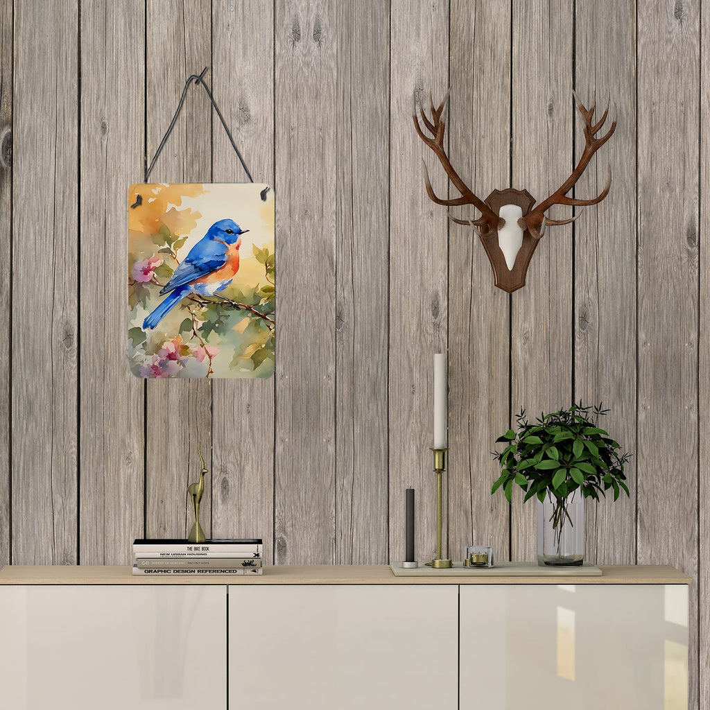 Wall or Door Hanging Prints featuring breed specific Bluebird artwork. Spruce up your space with our Indoor or Outdoor Aluminum Artwork Prints. Designed to brighten your kitchen, bathroom, office, or outdoor areas like patios and porches, these prints offer a unique way to decorate your home or workspace. Measuring 12 by 16 inches, the prints are vibrant, full color, and bring an element of artistry to any setting. What makes these prints special is their durability and resistance to the elements. If placed outside, they can withstand direct sunlight for a considerable time before showing signs of fading. Crafted from rust and fade-resistant aluminum, these prints are built to last and maintain their vibrant colors. Each print comes with a black hanging rope and rounded corners for safety. The back of the print showcases a brushed silver color, adding a touch of sophistication. The lightweight design allows easy hanging with virtually any nail or screw, making installation a breeze. Whether indoors or outdoors, these prints add a distinctive touch to any space.