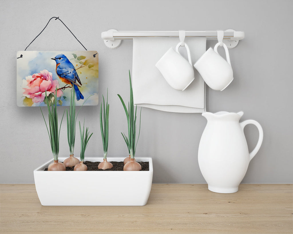 Wall or Door Hanging Prints featuring breed specific Bluebird artwork. Add a splash of color and artistic flair to any indoor or outdoor space with our Aluminum Artwork Prints. These unique prints, featuring full-color, multicolor designs, provide a versatile decorative touch that can enhance a kitchen, bathroom, office, outdoor patio, or even the front door area. Each print measures 8 inches by 12 inches, making it the perfect size to catch the eye without overwhelming your space. Constructed with durability in mind, these prints can be placed outdoors and withstand direct sunlight for a significant amount of time before any fading begins. Designed for easy installation, each print features a black hanging rope and has a lightweight profile. This allows for quick hanging with just about any nail or screw. For safety and aesthetic appeal, the print's corners are gently rounded. The back of the print showcases a brushed silver color for an added touch of elegance. Rust and fade-resistant, these Aluminum Artwork Prints are not only beautiful but are also built to last. Elevate your space with these stunning prints, crafted with care and artistic passion.