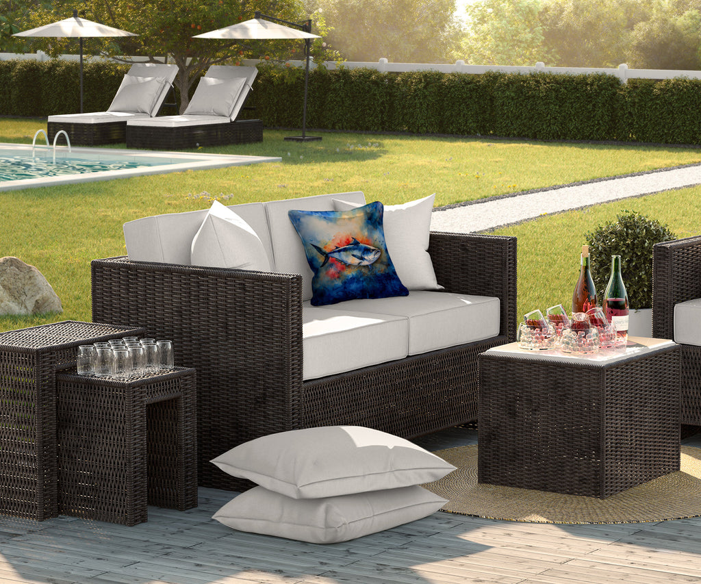 Decorate your space with our Bluefin Tuna artwork on a Pillow. Revitalize your outdoor or indoor living space with Caroline's Treasures 18x18 Fabric Decorative Pillow. With a generously sized dimension of approximately 18 inches by 18 inches, this pillow makes a comfortable and aesthetic addition to any seating area. Made from a unique, water-resistant material developed by Caroline's Treasures, the pillow sham is 100% polyester fabric that's durable and ready to weather any condition. Its vibrant, full-color artwork will not fade over time as it is dyed with color-fast dyes. Whether you place it on your patio furniture, porch, veranda, or indoor couch, its soft canvas fabric ensures a cozy experience. The pillow is handcrafted in the United States, featuring a sham created from three pieces of fabric and a polyester insert for enduring shape and overstuffed comfort. Despite being robustly built to endure the outdoors, it is as soft and snug as your favorite indoor cushions. Please note, as all our pillows are handmade, sizes may vary slightly, adding to the charm of this unique decorative item.