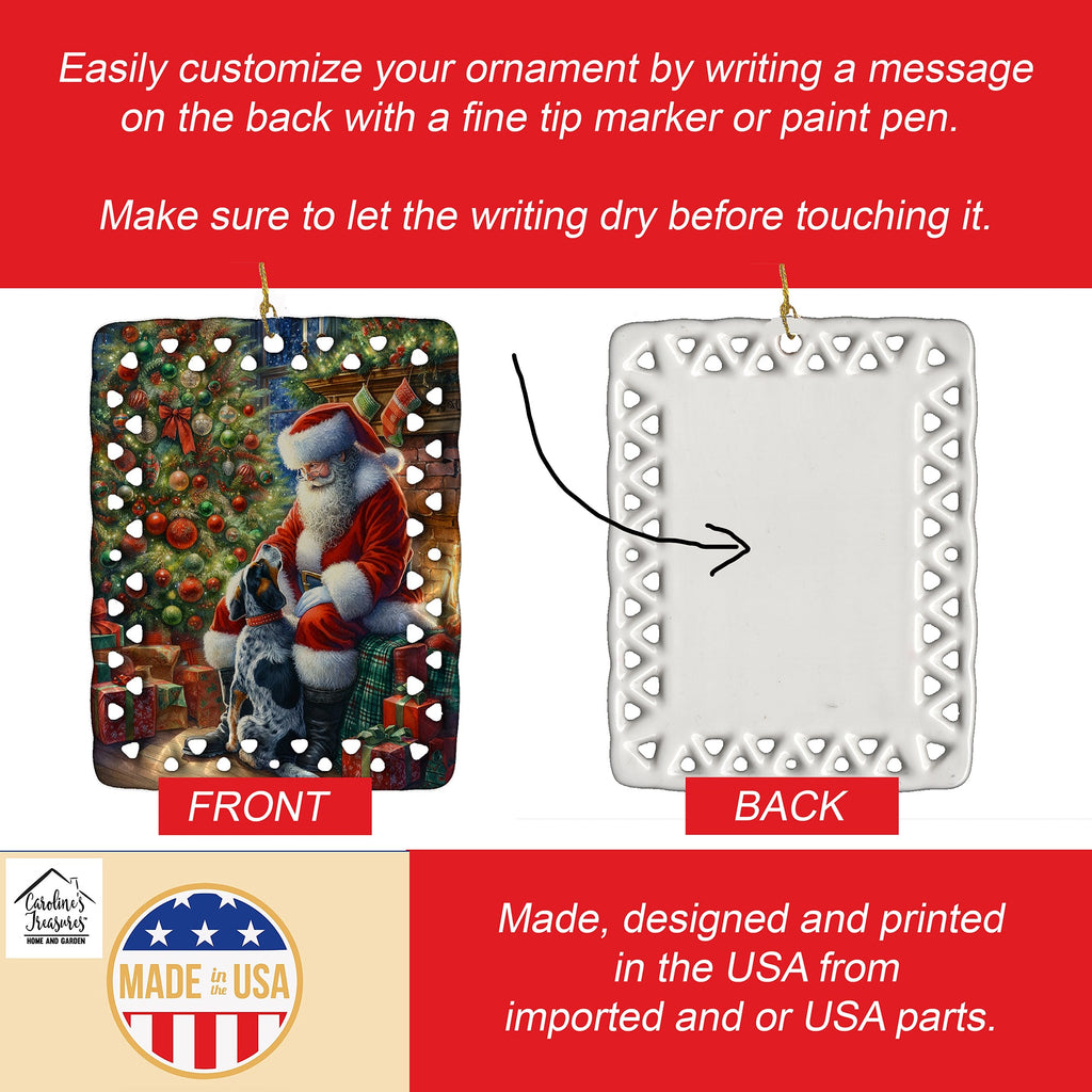 Bluetick Hound and Santa Claus Porcelain Ornament