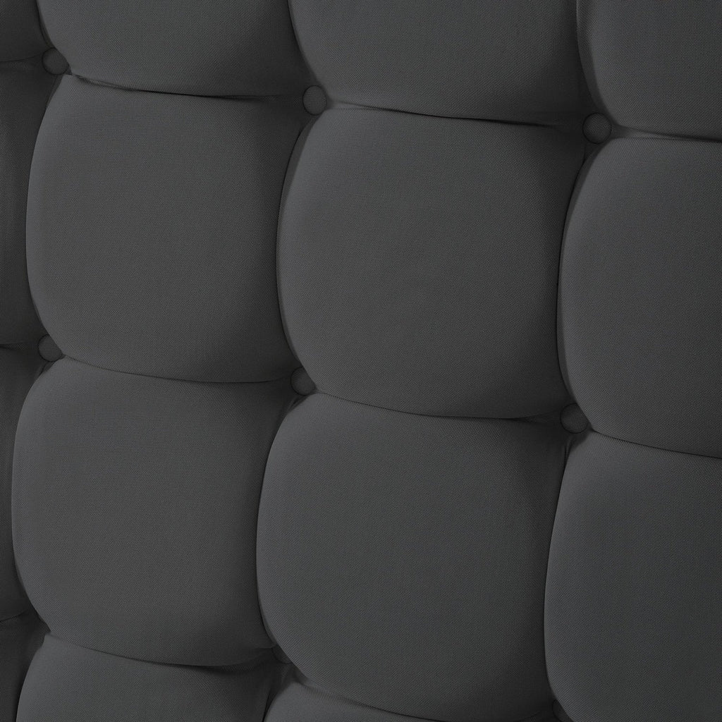 Our bed frame adds a measure of modern sophistication and elegance to your bedroom. Get the feeling of laying your head down each night in a upscale five star hotel room. This stylish bed frame features exquisite fabric, a button tufted high density foam padded headboard, and tapered solid wood legs to provide a luxurious end to your day.