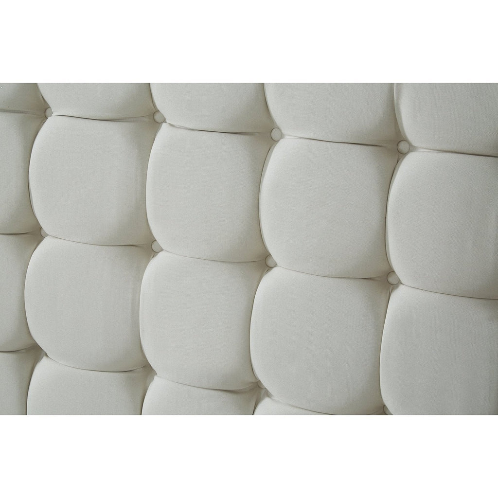 - BUTTON TUFTED - Glam button tufting on headboard enhances distinguished silhouette of this marvelous contemporary design.