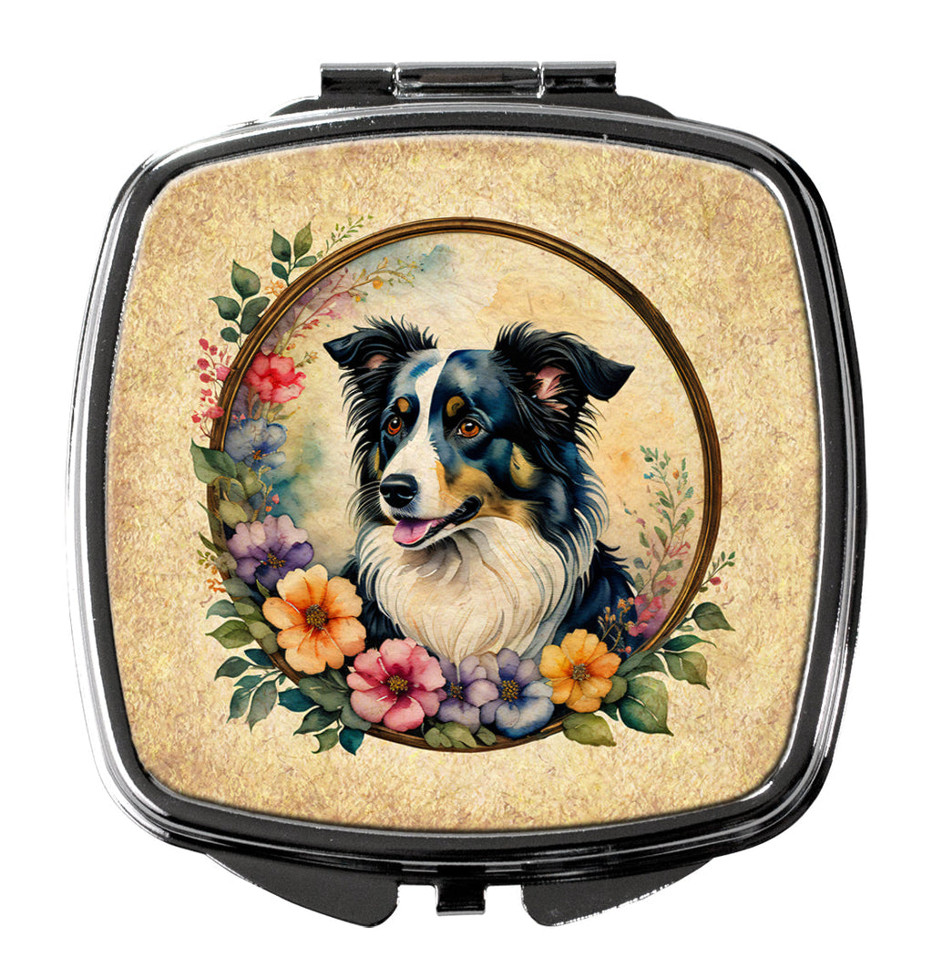 Decorate your space with our Border Collie artwork on a Compact Mirror. Bring a bit of Spring into your home with a Spring Compact Mirror. Introducing our Square Compact Mirror, a blend of elegance, functionality, and compactness, perfect for on-the-go touch-ups. This Silvertone metal mirror, with dimensions of 2.75 inches x 3 inches x .3 inches, fits effortlessly into your purse, handbag, or pocket, ensuring that you can check your appearance anytime, anywhere. Our compact mirror stands out with its eye-catching artwork on the front, adding a dash of style to this practical accessory. It is more than just a mirror; it's a statement piece that reflects your personality and aesthetic. When opened, this compact reveals two mirrors inside, doubling your perspective for precise touch-ups. The Silvertone metal construction ensures durability while maintaining a lightweight feel, making it an ideal everyday carry item. Whether you're rushing to a meeting, prepping for a dinner date, or just need a quick check on your look, our Square Compact Mirror is your reliable companion. Experience the perfect blend of style and practicality with this must-have accessory.
