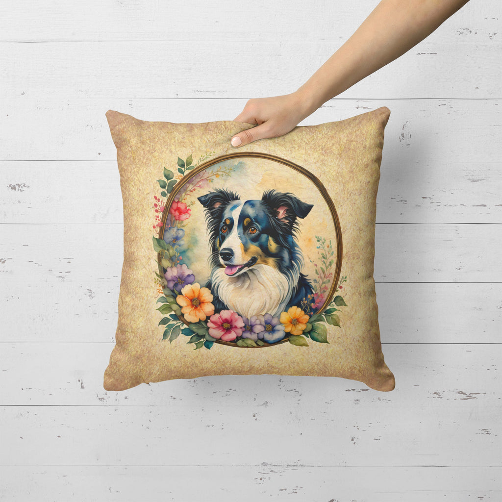 Decorate your space with our Border Collie artwork on a Pillow. Bring a bit of Spring into your home with a Spring Pillow. Revitalize your outdoor or indoor living space with Caroline's Treasures 18x18 Fabric Decorative Pillow. With a generously sized dimension of approximately 18 inches by 18 inches, this pillow makes a comfortable and aesthetic addition to any seating area. Made from a unique, water-resistant material developed by Caroline's Treasures, the pillow sham is 100% polyester fabric that's durable and ready to weather any condition. Its vibrant, full-color artwork will not fade over time as it is dyed with color-fast dyes. Whether you place it on your patio furniture, porch, veranda, or indoor couch, its soft canvas fabric ensures a cozy experience. The pillow is handcrafted in the United States, featuring a sham created from three pieces of fabric and a polyester insert for enduring shape and overstuffed comfort. Despite being robustly built to endure the outdoors, it is as soft and snug as your favorite indoor cushions. Please note, as all our pillows are handmade, sizes may vary slightly, adding to the charm of this unique decorative item.