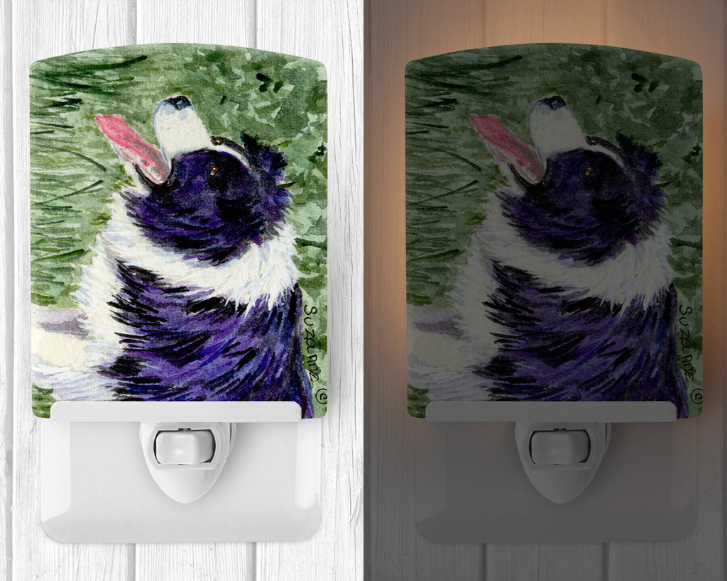 Decorate your space with our Border Collie artwork on a Night Light. Introduce a splash of artistic flair and subtle illumination to your space with the Decorative Ceramic Night Light from Caroline's Treasures. Perfect for any room, this night light seamlessly blends functionality with an aesthetic appeal, offering a stylish solution to brighten up dark corners of your home or office. Boasting a six-inch high by four-inch wide ceramic tile at the front, it showcases vivid, full-color artwork from distinguished artists, transforming a simple utility into a vibrant art piece. The artwork is securely encased in a robust metal holder, ensuring durability and longevity. Two screws are provided to firmly affix the tile into the holder. The holder extends three inches deep, housing an included bulb that emits a soft, welcoming glow. This product meets all safety standards, as evidenced by its UL approval. Proudly made in the United States from imported components, this Decorative Ceramic Night Light is not just a functional device; it's a statement piece that enhances the ambiance of your surroundings.