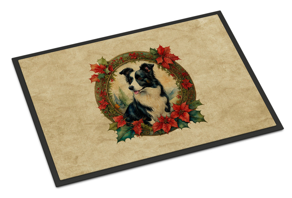 Border Collie Christmas Flowers Doormat-24x36 Indoor / Outdoor Rug | Made in USA