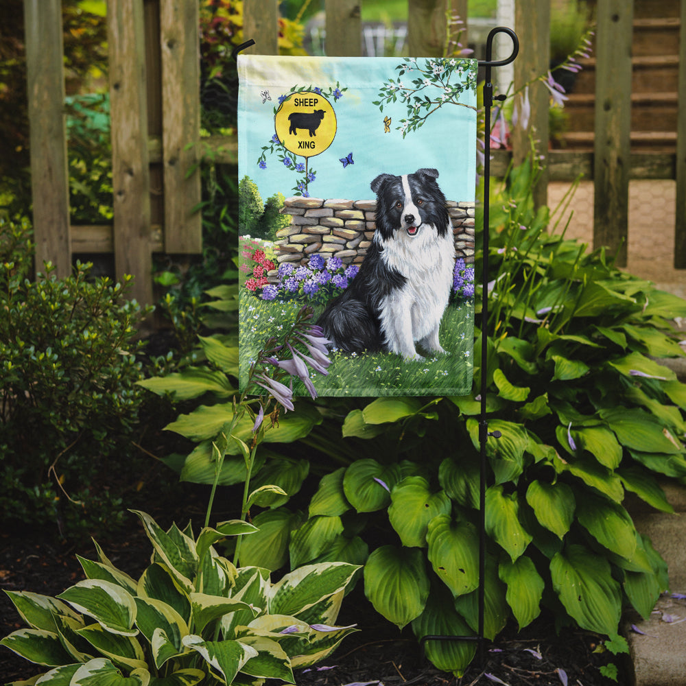 Decorate your space with our Border Collie artwork on a Garden Flag. Enhance the beauty of your garden, patio, or yard with Caroline's Treasures Decorative Garden Flag, proudly made in the USA. Crafted from two pieces of thick, double-sided polyester fabric, this 2-ply garden flag is designed to withstand various weather conditions, making it water-resistant and weatherproof. Featuring correctly readable words on both sides, this garden flag offers a delightful visual experience from any angle. With its heavier weight, it stands out among other garden flags, ensuring stability and durability even in wind, rain, and snow. Measuring approximately 11 1/4 inches by 15 1/2 inches, this flag allows you to personalize your outdoor decor. It comes with a 1 1/2-inch sleeve sewn in, allowing easy attachment to any standard garden flag stand or garden size porch hanger (sold separately). Make a statement in your outdoor space with Caroline's Treasures Decorative Garden Flag, a vibrant and high-quality flag that adds color and personality to your surroundings. Proudly made in the USA, it's a symbol of quality craftsmanship and attention to detail.