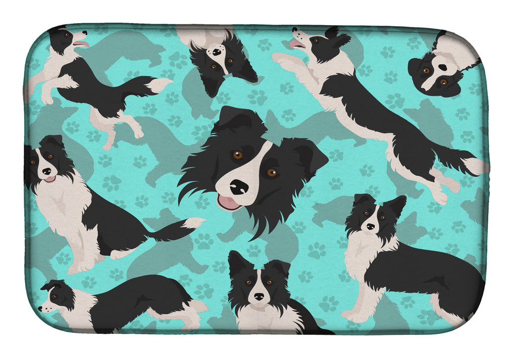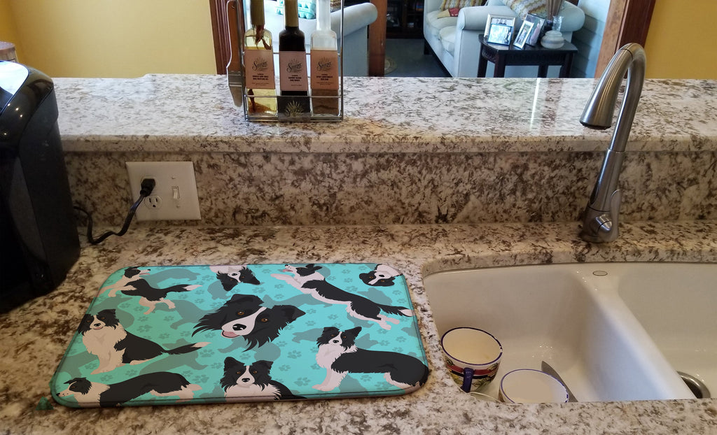 Decorate your space with our Border Collie artwork on a Dish Drying Mat. Say goodbye to messy countertops and soggy dish towels with our innovative dish drying mat. Our high-quality dish drying pad is designed to keep your countertops dry while offering a stylish and efficient solution. Whether you're air drying dishes, glasses, stemware, silverware, pots, pans, bottles, or even fruits and vegetables, our dish mat is the perfect choice. The 14 inches x 22 inches size fits most counters and dish drying racks, and the non-slip design ensures stability. Made with water-absorbent polyester and a polyurethane foam insert, our dish drying mat is not only functional but also durable. It's machine washable and printed in the USA for long-lasting use. The beautiful artwork adds flair to your kitchen decor, making it a perfect housewarming gift or present for any occasion. Upgrade your kitchen experience with our absorbent and versatile dish drying mat.