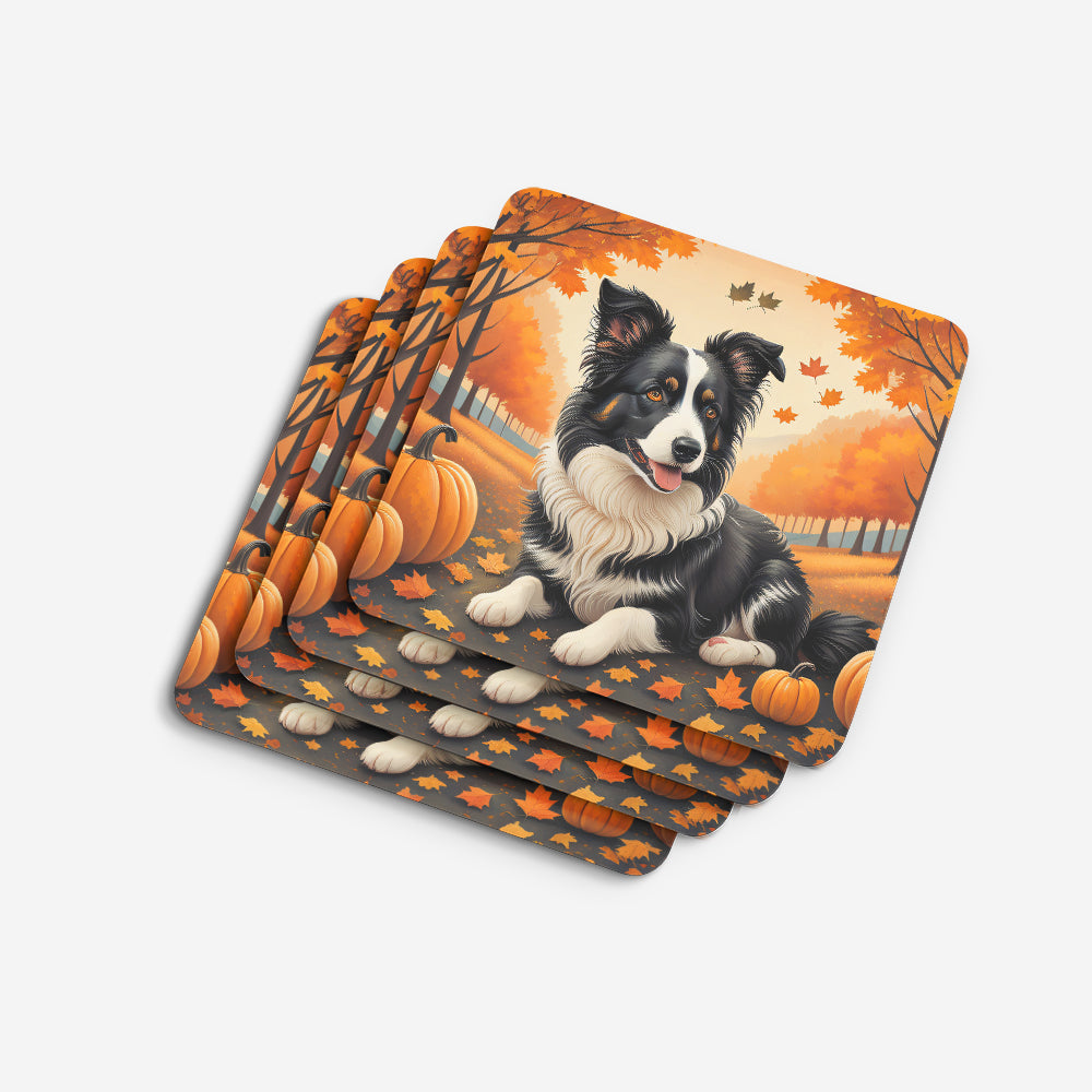 Decorate your space with our Border Collie artwork on a Coaster set. Bring a bit of Fall into your home with a Fall Coaster set. Presenting our Set of 4 Foam Coasters, a stylish and practical addition to your table setting. Each square coaster, measuring 3 1/2 inches by 3 1/2 inches, is perfectly sized to accommodate various drinkware, from coffee mugs to tumblers. These coasters stand out with their full-color artwork, permanently dyed onto the material for a vibrant and fade-resistant finish. They're not just functional, they're a fashionable statement, adding a touch of flair to any gathering or event. Our foam coasters serve a dual purpose - they protect your table from water stains and are perfect for both hot and cold drinks. The material used is similar to that of our high-quality mouse pads, ensuring durability and heat resistance. These coasters are easy to maintain - simply wash them in the top of your dishwasher and lay flat to dry. The design won't come off, ensuring they retain their vivid colors for years. Pair them with one of our insulated coolers or huggers for a cohesive, thoughtful gift set. Enhance your beverage experience with our Set of 4 Foam Coasters.