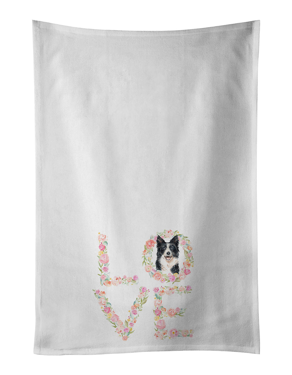 Border Collie Love White Kitchen Towel Set of 2 Dish Towels