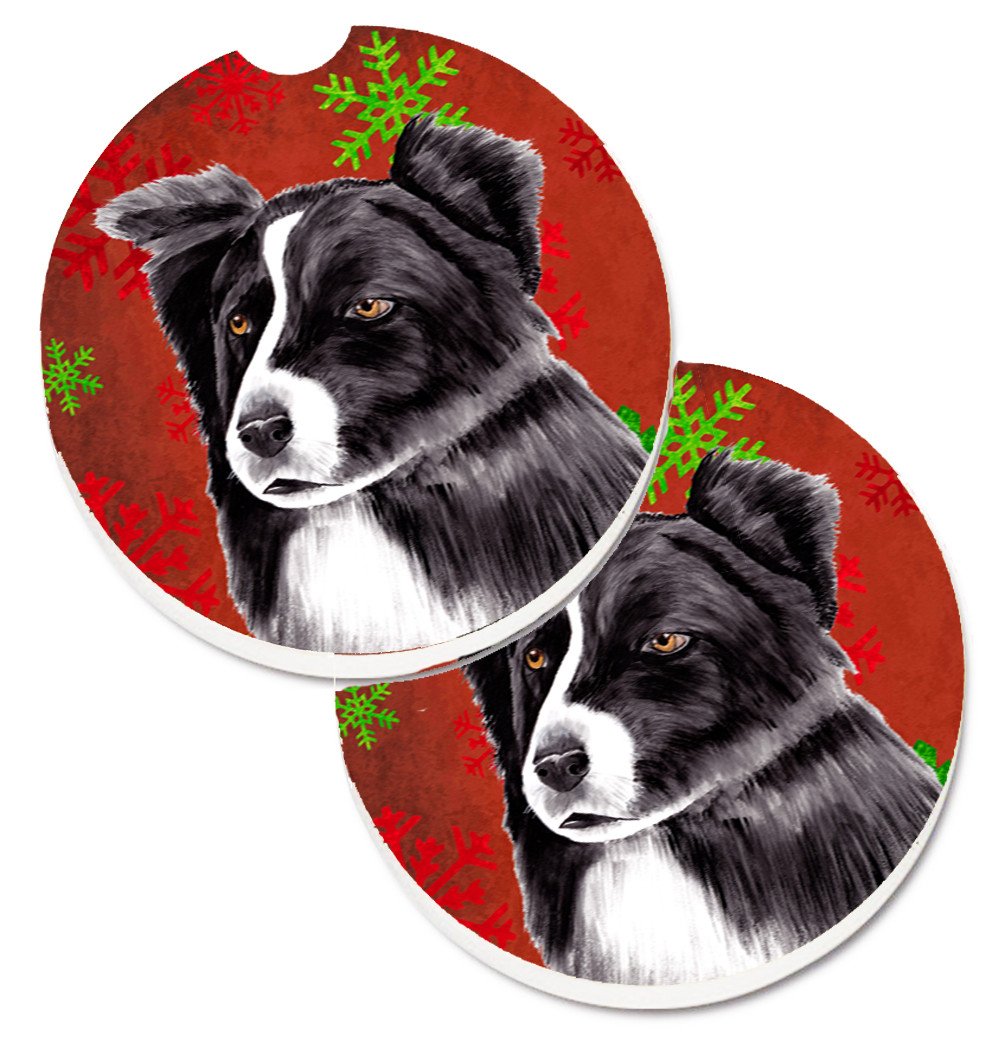 Border Collie Red and Green Snowflakes Holiday Christmas Car Coasters – Set of 2 - Absorbent Stone with Fun & Functional Artwork SC9407CARC