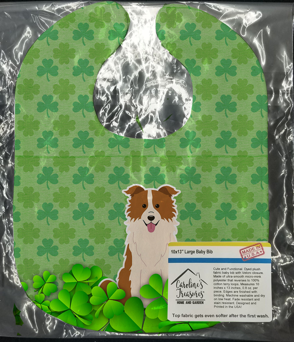 Decorate your space with our St Patrick's Day Border Collie artwork on a Baby Bib. Cute and Functional. Dyed plush fabric baby bib with Velcro closure. Made of ultra-smooth micro-mink polyester that reverses to 100% cotton terry loops. Measures 10 inches x 13 inches, 0.8 oz. per piece. Edges are finished with binding. Machine washable and dry on low heat. Fade resistant and stain resistant. Top fabric gets even softer after the first wash.