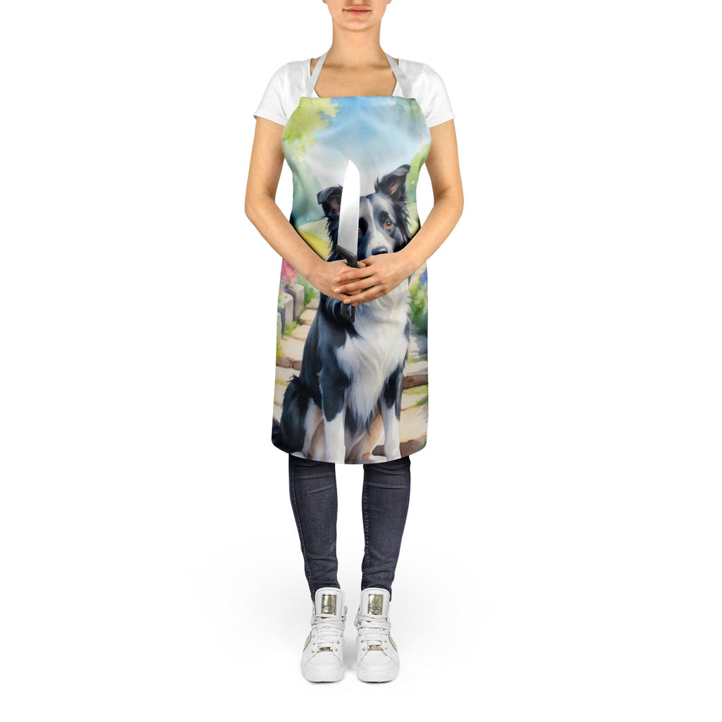 Decorate your space with our Border Collie artwork on a Apron. Bring a bit of Spring into your home with a Spring Apron. Elevate your cooking, baking, and grilling experiences with our versatile Kitchen or BBQ Apron. This Bib Style apron isn't just limited to culinary activities - it also serves as an excellent baking apron, artist apron, server apron, gardening apron, or even a dog grooming apron. The apron showcases vibrant full-color artwork contributed by one of our talented artists, bringing a dash of style to your daily tasks. With dimensions of approximately 27"W x 30"H, it provides ample coverage to protect your clothing from spills and splashes. Our apron is meticulously crafted from 100% Ultra Spun Polyester, known for its durability and lightweight nature. The apron comes with white tie straps, ensuring a comfortable and adjustable fit for all. It's a perfect choice for kitchen apron enthusiasts, whether you are a woman or a man. Designed for easy maintenance, this apron is fully machine washable. The quick-drying polyester material actively reduces staining, keeping your apron looking fresh and new for longer. Our beautifully designed apron isn't just a functional kitchen accessory - it's a fashion statement in the culinary world!