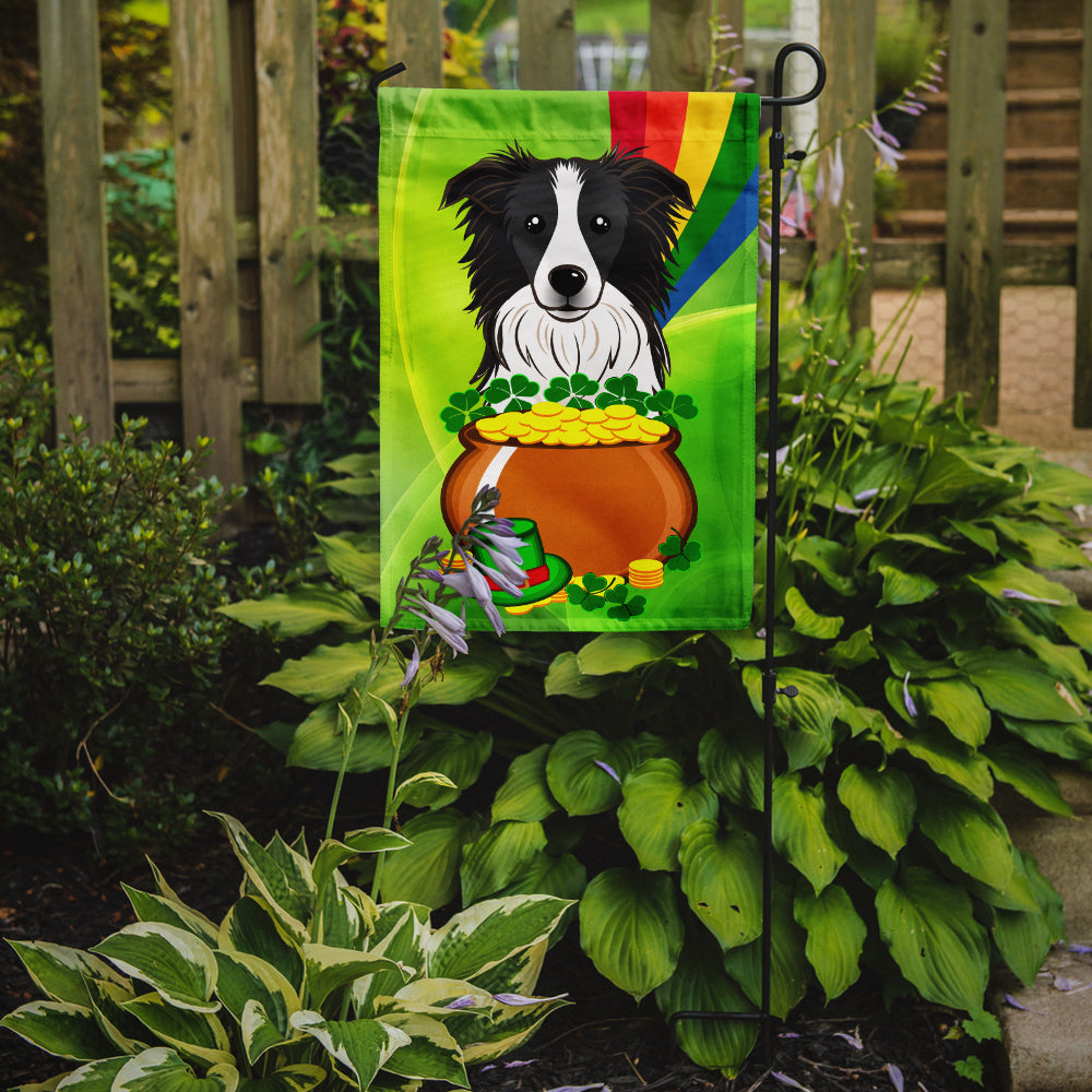 Decorate your space with our St Patrick's Day Border Collie artwork on a Garden Flag. Enhance the beauty of your garden, patio, or yard with Caroline's Treasures Decorative Garden Flag, proudly made in the USA. Crafted from two pieces of thick, double-sided polyester fabric, this 2-ply garden flag is designed to withstand various weather conditions, making it water-resistant and weatherproof. Featuring correctly readable words on both sides, this garden flag offers a delightful visual experience from any angle. With its heavier weight, it stands out among other garden flags, ensuring stability and durability even in wind, rain, and snow. Measuring approximately 11 1/4 inches by 15 1/2 inches, this flag allows you to personalize your outdoor decor. It comes with a 1 1/2-inch sleeve sewn in, allowing easy attachment to any standard garden flag stand or garden size porch hanger (sold separately). Make a statement in your outdoor space with Caroline's Treasures Decorative Garden Flag, a vibrant and high-quality flag that adds color and personality to your surroundings. Proudly made in the USA, it's a symbol of quality craftsmanship and attention to detail.