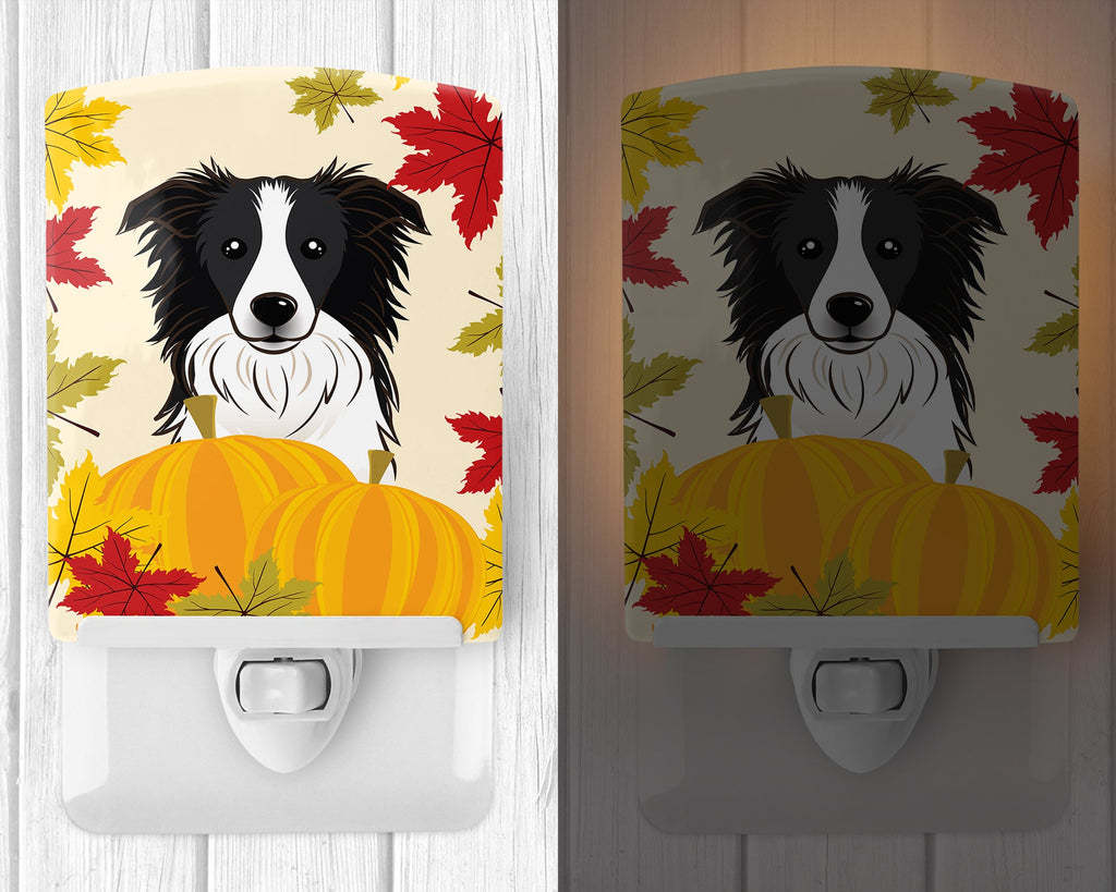 Decorate your space with our Thanksgiving Border Collie artwork on a Night Light. Introduce a splash of artistic flair and subtle illumination to your space with the Decorative Ceramic Night Light from Caroline's Treasures. Perfect for any room, this night light seamlessly blends functionality with an aesthetic appeal, offering a stylish solution to brighten up dark corners of your home or office. Boasting a six-inch high by four-inch wide ceramic tile at the front, it showcases vivid, full-color artwork from distinguished artists, transforming a simple utility into a vibrant art piece. The artwork is securely encased in a robust metal holder, ensuring durability and longevity. Two screws are provided to firmly affix the tile into the holder. The holder extends three inches deep, housing an included bulb that emits a soft, welcoming glow. This product meets all safety standards, as evidenced by its UL approval. Proudly made in the United States from imported components, this Decorative Ceramic Night Light is not just a functional device; it's a statement piece that enhances the ambiance of your surroundings.