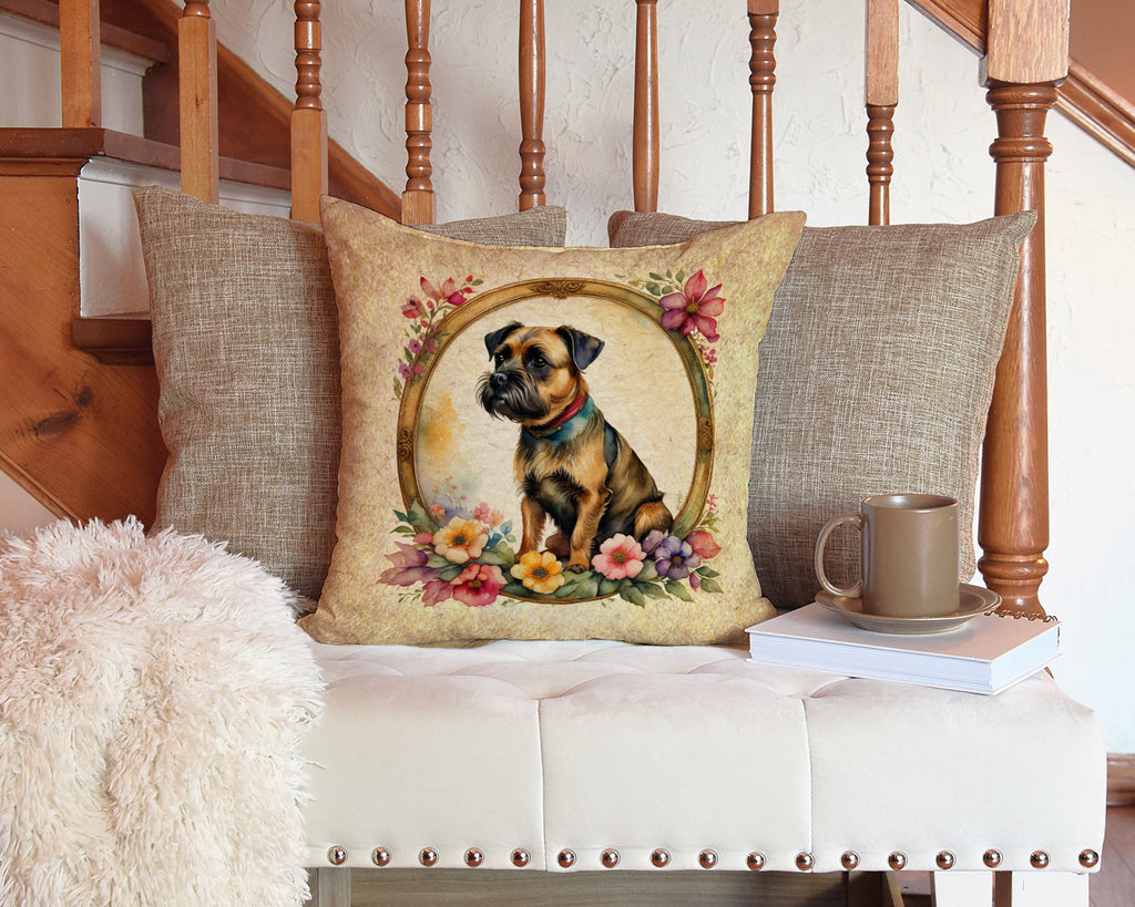Decorate your space with our Border Terrier artwork on a Pillow. Bring a bit of Spring into your home with a Spring Pillow. Add a touch of vibrancy and comfort to your outdoor seating with Caroline's Treasures Fabric Decorative Pillow. Measuring approximately 14 inches by 14 inches, this outdoor pillow is crafted to elevate the appeal of your patio furniture, infusing it with vivid color and artistic flair. The pillow includes a 100% Polyester Fabric sham filled with a quality pillow form to provide superior comfort. Innovatively made from our brand new material, specifically woven for its water resistance, this pillow is designed for durability. The soft canvas fabric offers versatility in use, fit for your indoor couch or your outdoor patio, porch, or veranda. The fabric is dyed with colorfast dyes built for resilience against weather conditions, ensuring the pillow retains its beauty over time. Constructed by sewing three fabric pieces to create a sham, the polyester insert is then nestled inside to form the pillow, resulting in an overstuffed pillow that maintains its shape. Both the sham and the pillow insert are proudly made in the United States. As the pillows are handcrafted, there may be minor variations in size, further enhancing their unique charm. Experience comfort in style with Caroline's Treasures Fabric Decorative Pillow.