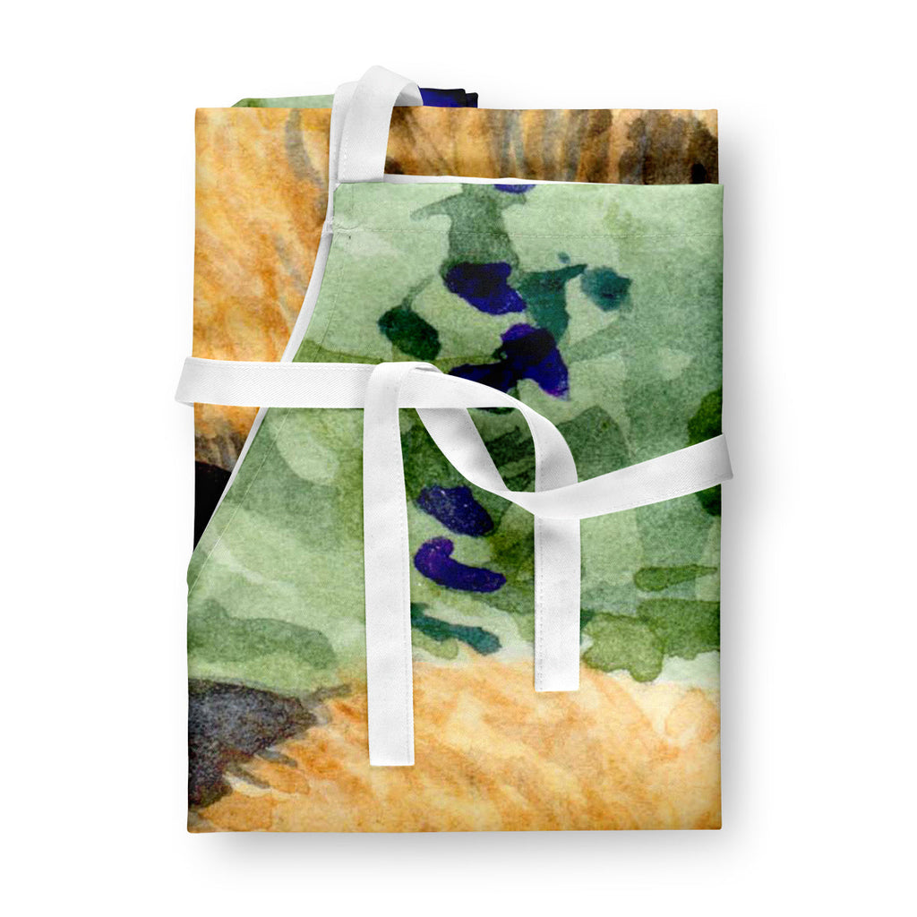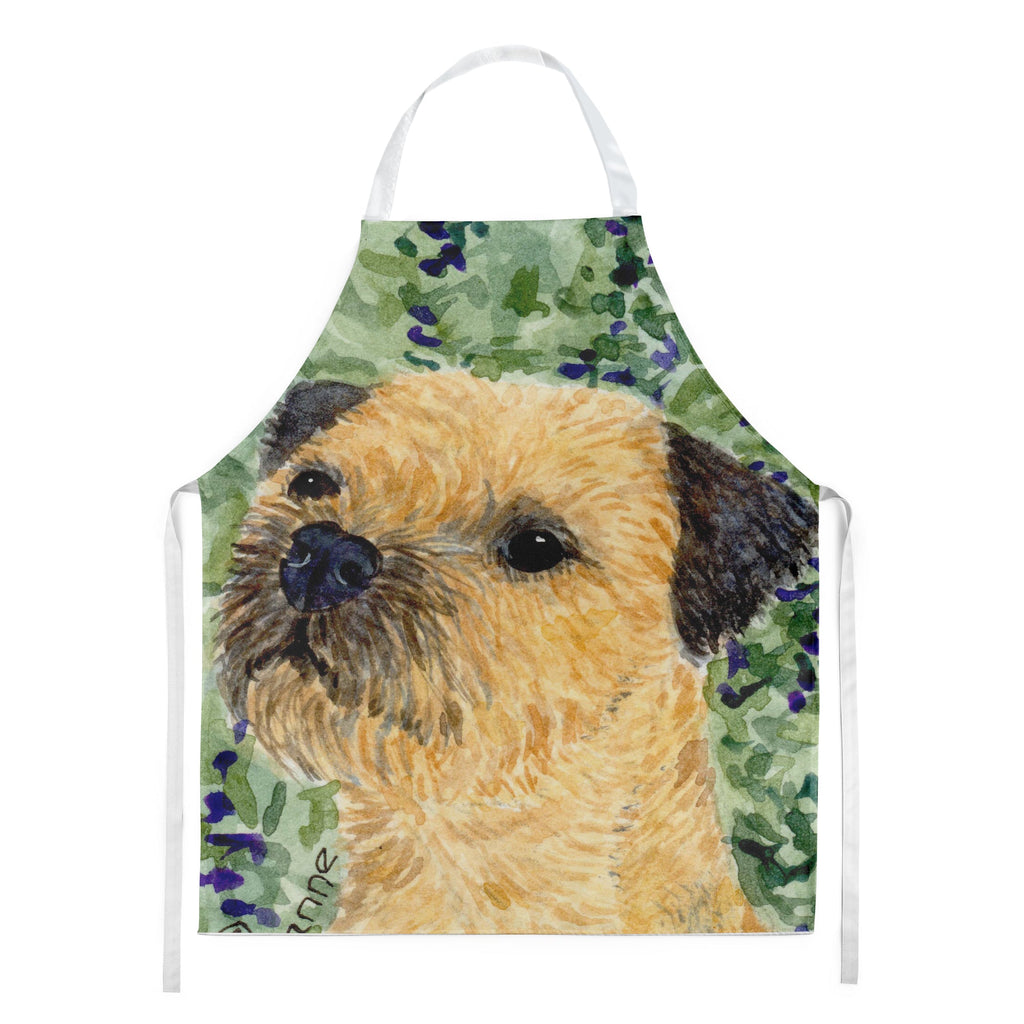 Decorate your space with our Border Terrier artwork on a Apron. Elevate your cooking, baking, and grilling experiences with our versatile Kitchen or BBQ Apron. This Bib Style apron isn't just limited to culinary activities - it also serves as an excellent baking apron, artist apron, server apron, gardening apron, or even a dog grooming apron. The apron showcases vibrant full-color artwork contributed by one of our talented artists, bringing a dash of style to your daily tasks. With dimensions of approximately 27"W x 30"H, it provides ample coverage to protect your clothing from spills and splashes. Our apron is meticulously crafted from 100% Ultra Spun Polyester, known for its durability and lightweight nature. The apron comes with white tie straps, ensuring a comfortable and adjustable fit for all. It's a perfect choice for kitchen apron enthusiasts, whether you are a woman or a man. Designed for easy maintenance, this apron is fully machine washable. The quick-drying polyester material actively reduces staining, keeping your apron looking fresh and new for longer. Our beautifully designed apron isn't just a functional kitchen accessory - it's a fashion statement in the culinary world!