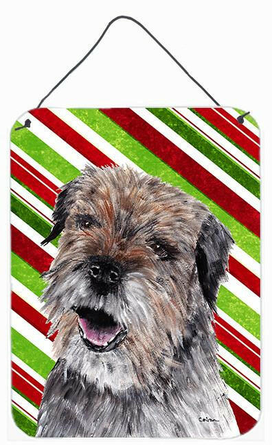 Border Terrier Candy Cane Christmas Aluminium Metal Wall or Door Hanging Prints