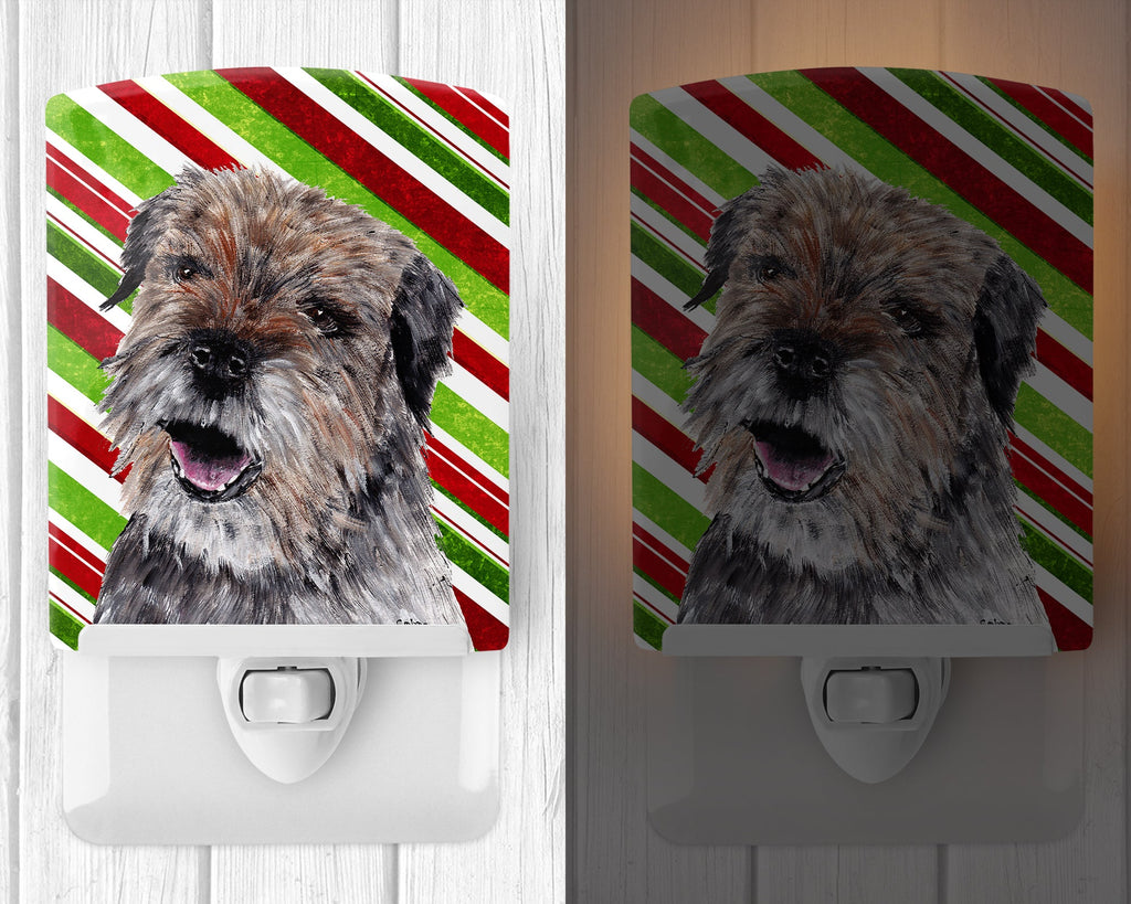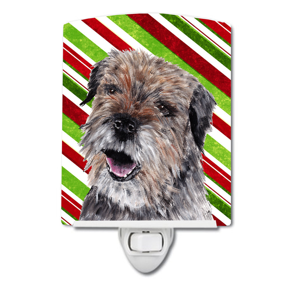 Decorate your space with our Christmas Border Terrier artwork on a Night Light. Introduce a splash of artistic flair and subtle illumination to your space with the Decorative Ceramic Night Light from Caroline's Treasures. Perfect for any room, this night light seamlessly blends functionality with an aesthetic appeal, offering a stylish solution to brighten up dark corners of your home or office. Boasting a six-inch high by four-inch wide ceramic tile at the front, it showcases vivid, full-color artwork from distinguished artists, transforming a simple utility into a vibrant art piece. The artwork is securely encased in a robust metal holder, ensuring durability and longevity. Two screws are provided to firmly affix the tile into the holder. The holder extends three inches deep, housing an included bulb that emits a soft, welcoming glow. This product meets all safety standards, as evidenced by its UL approval. Proudly made in the United States from imported components, this Decorative Ceramic Night Light is not just a functional device; it's a statement piece that enhances the ambiance of your surroundings.