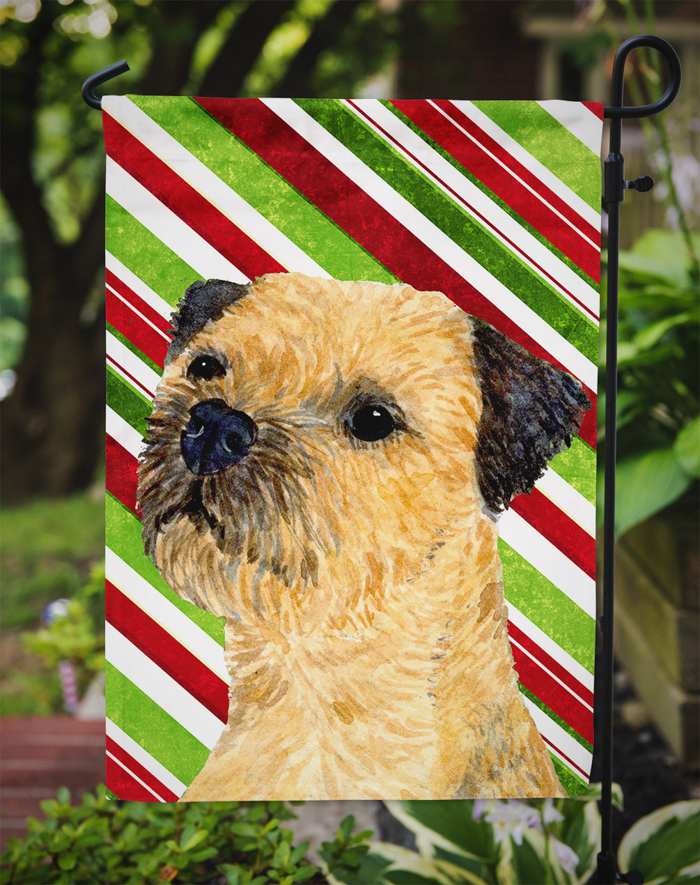 Decorate your space with our Christmas Border Terrier artwork on a Garden Flag. Enhance the beauty of your garden, patio, or yard with Caroline's Treasures Decorative Garden Flag, proudly made in the USA. Crafted from two pieces of thick, double-sided polyester fabric, this 2-ply garden flag is designed to withstand various weather conditions, making it water-resistant and weatherproof. Featuring correctly readable words on both sides, this garden flag offers a delightful visual experience from any angle. With its heavier weight, it stands out among other garden flags, ensuring stability and durability even in wind, rain, and snow. Measuring approximately 11 1/4 inches by 15 1/2 inches, this flag allows you to personalize your outdoor decor. It comes with a 1 1/2-inch sleeve sewn in, allowing easy attachment to any standard garden flag stand or garden size porch hanger (sold separately). Make a statement in your outdoor space with Caroline's Treasures Decorative Garden Flag, a vibrant and high-quality flag that adds color and personality to your surroundings. Proudly made in the USA, it's a symbol of quality craftsmanship and attention to detail.