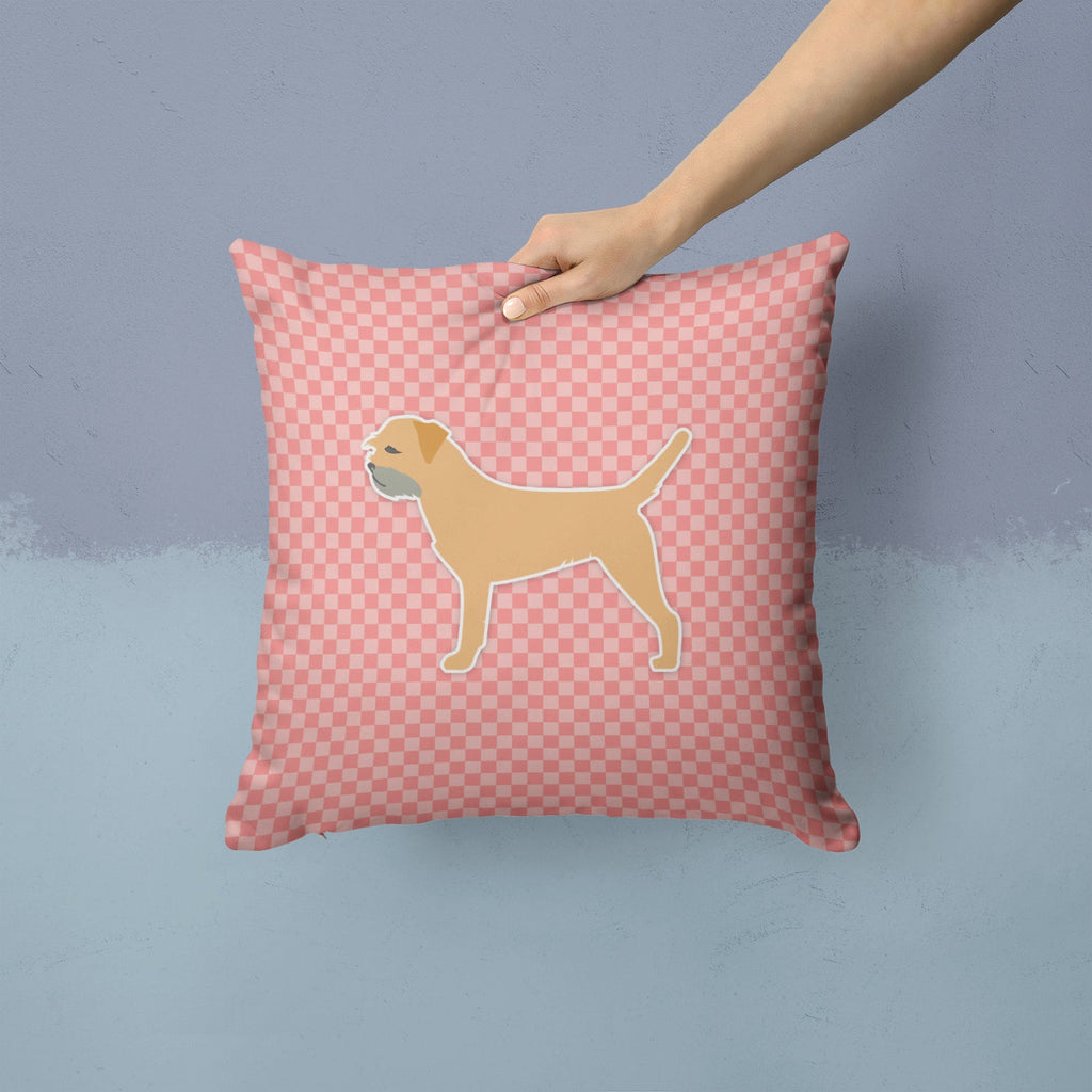 Border Terrier Checkerboard Pink Throw Pillow - 14x14 Decorative Pillow – Art for Your Home & Patio BB3589PW1414