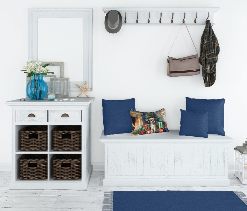Decorate your space with our Christmas Border Terrier artwork on a Pillow. Embrace the fusion of comfort and style with Caroline's Treasures Fabric Decorative Pillow. This 12x16 inch outdoor pillow is designed to complement your patio furniture, adding a splash of color and artistry to your outdoor setting. Constructed with a 100% Polyester Fabric pillow sham filled with a plush pillow form, this cushion is as comfortable as it is durable. Our outdoor pillow utilizes a novel fabric, meticulously woven for enhanced water resistance. This soft canvas material is equally suited for your indoor couch as well as outdoor settings such as the patio, porch, or veranda. To ensure enduring vibrance, we employ colorfast dyes resistant to fading even when subjected to weather elements. The making of this pillow involves the delicate sewing together of three fabric pieces to create a sham, into which a polyester insert is carefully placed. The result is an overstuffed pillow that tenaciously holds its shape. With both the sham and the pillow insert crafted in the United States, these handmade pillows are a testament to superior local craftsmanship. Note that as these pillows are handmade, sizes may slightly vary, enhancing their unique appeal. Enjoy comfort in style with Caroline's Treasures Fabric Decorative Pillow.